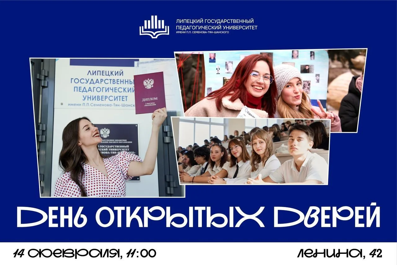 ФГБОУ ВО «Липецкий государственный педагогический университет имени П.П. Семенова-Тян-Шанского» приглашает Вас на ДЕНЬ ОТКРЫТЫХ ДВЕРЕЙ 14 февраля (суббота) в 11:00.