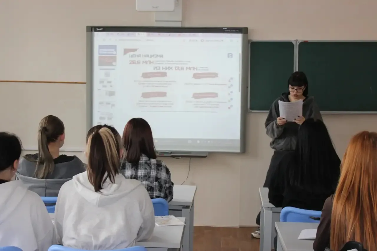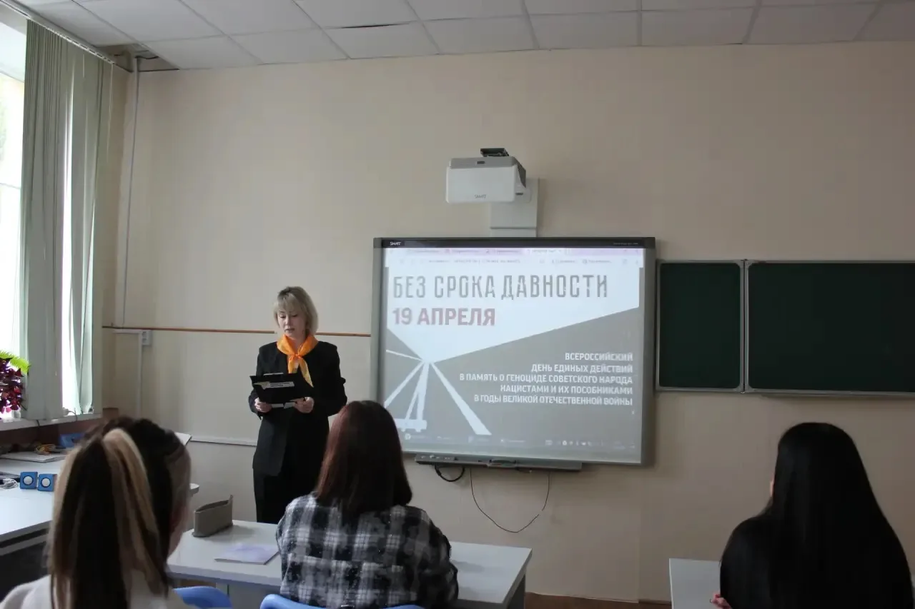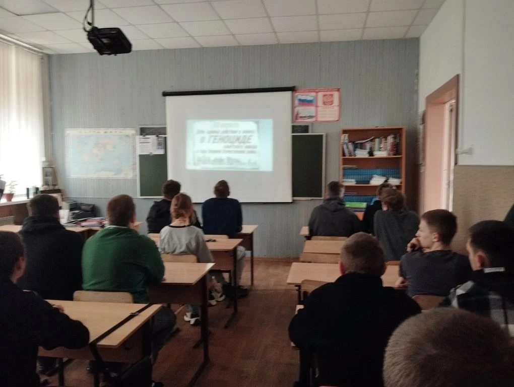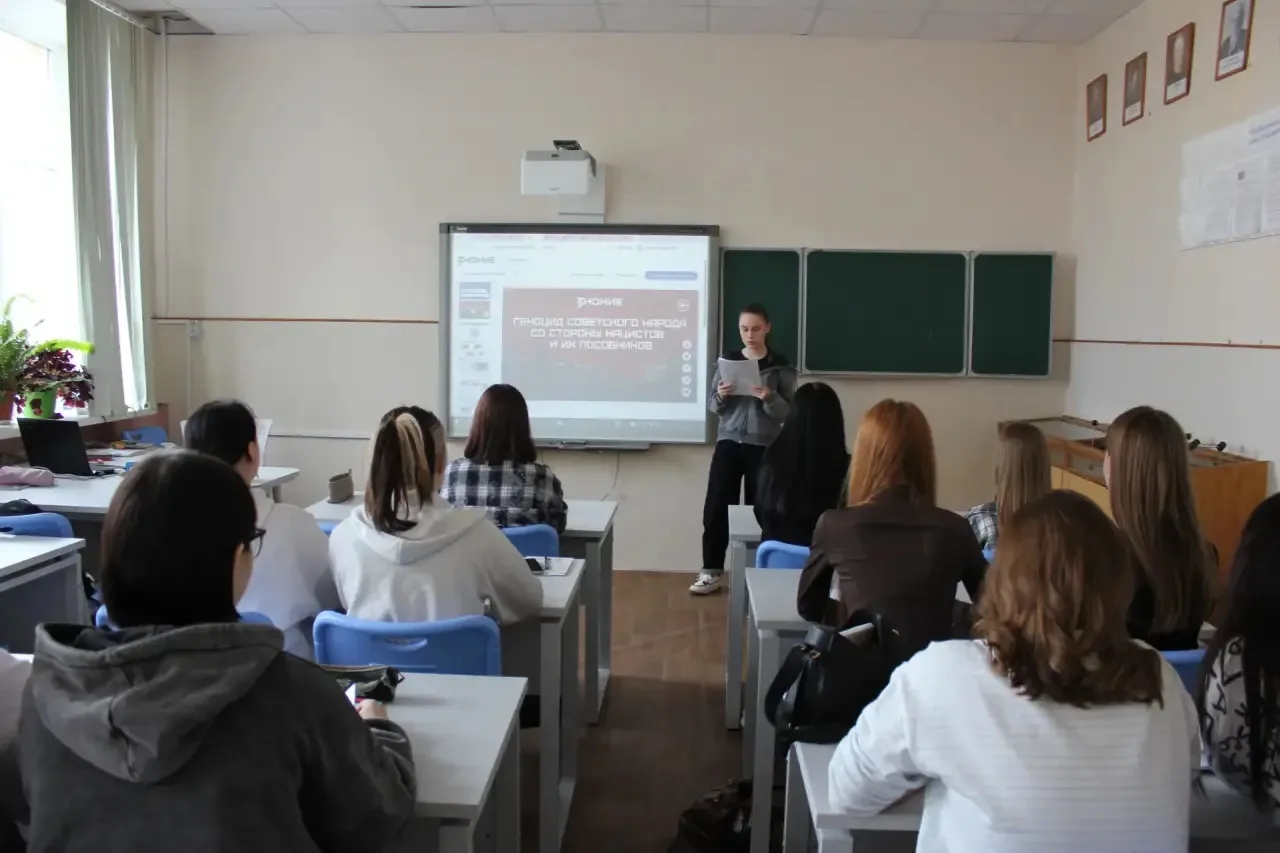 Обучающиеся выступили с лекцией, подготовленной Российским обществом «Знание» о геноциде советского народа в годы Великой Отечественной войны, вспомнили одну из самых тяжелых страниц нашей истории.