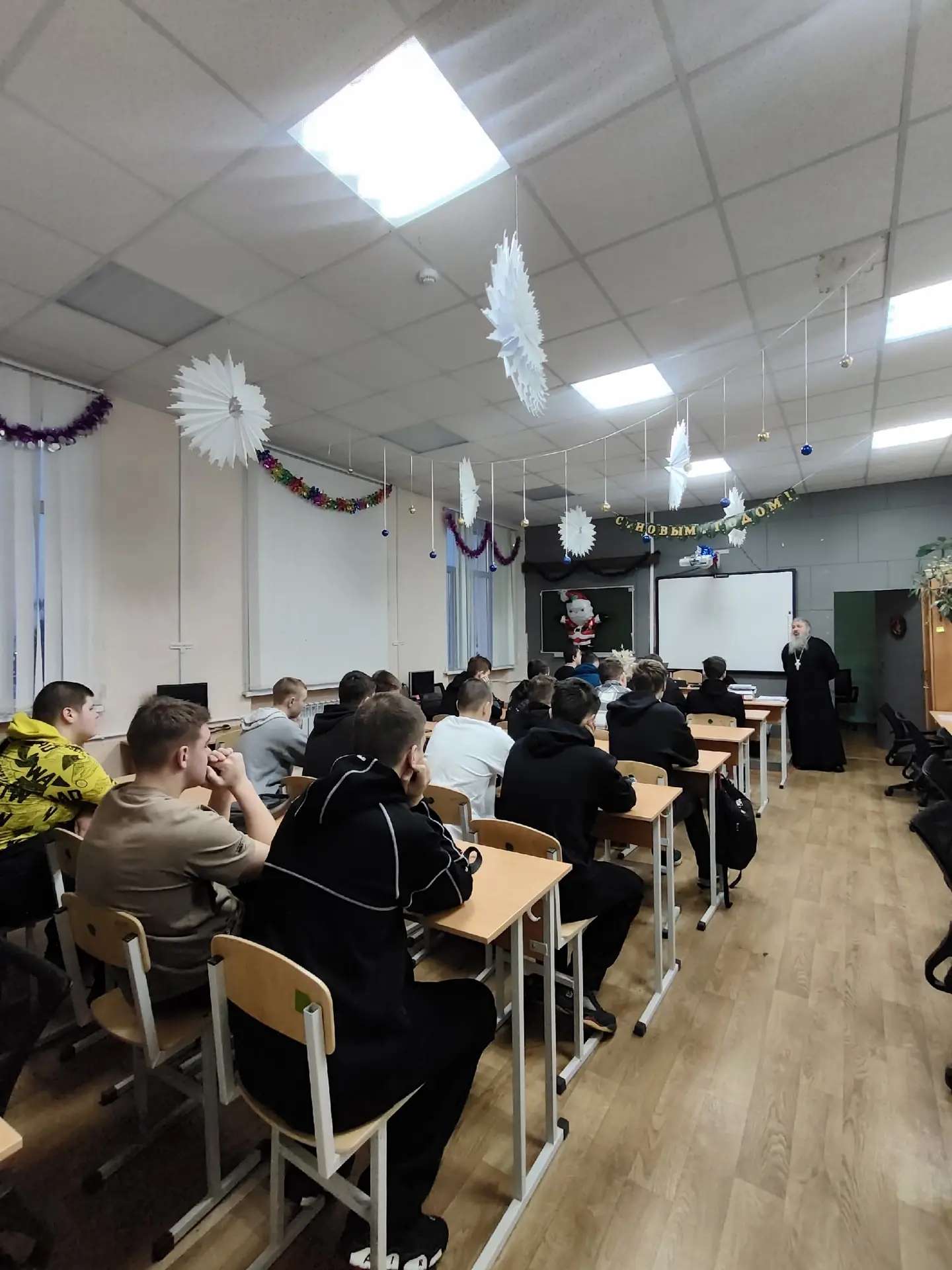 15 января со студентами группы А-1 в рамках классного часа встретился священнослужитель о. Феофил. Он рассказал о православных праздниках "Рождество Христово" и "Крещение Господне".