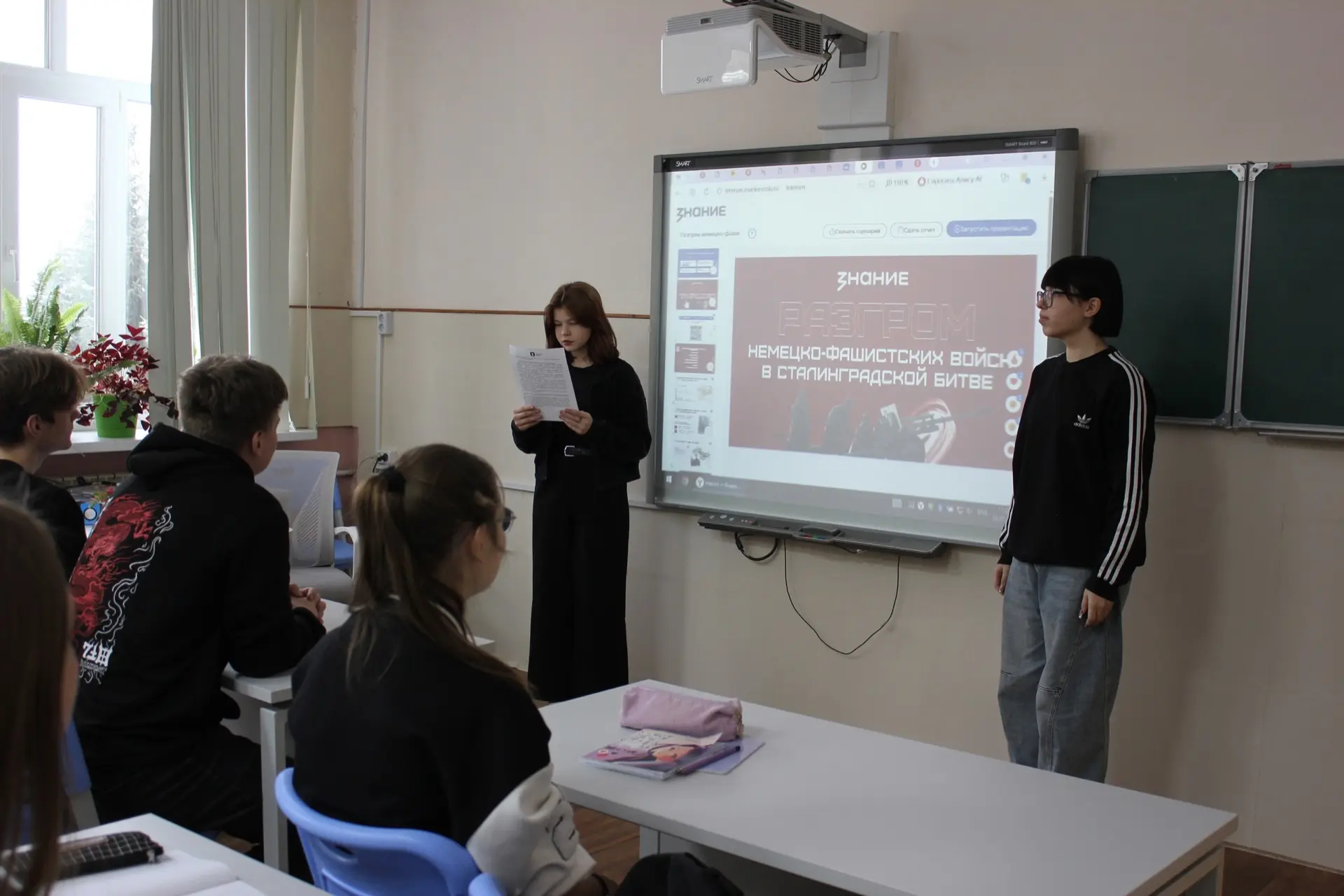 ➡️Для студентов второго курса советником директора по воспитанию Чутчевой М.И. была проведена лекция совместно с «Российским обществом «Знание» – «История Великой победы. Разгром немецко-фашистских войск в Сталинградской битве". Для ребят были подготовлено интерактивное задание-игра «Правда или вымысел» для знакомства с героями Сталинградской битвы.