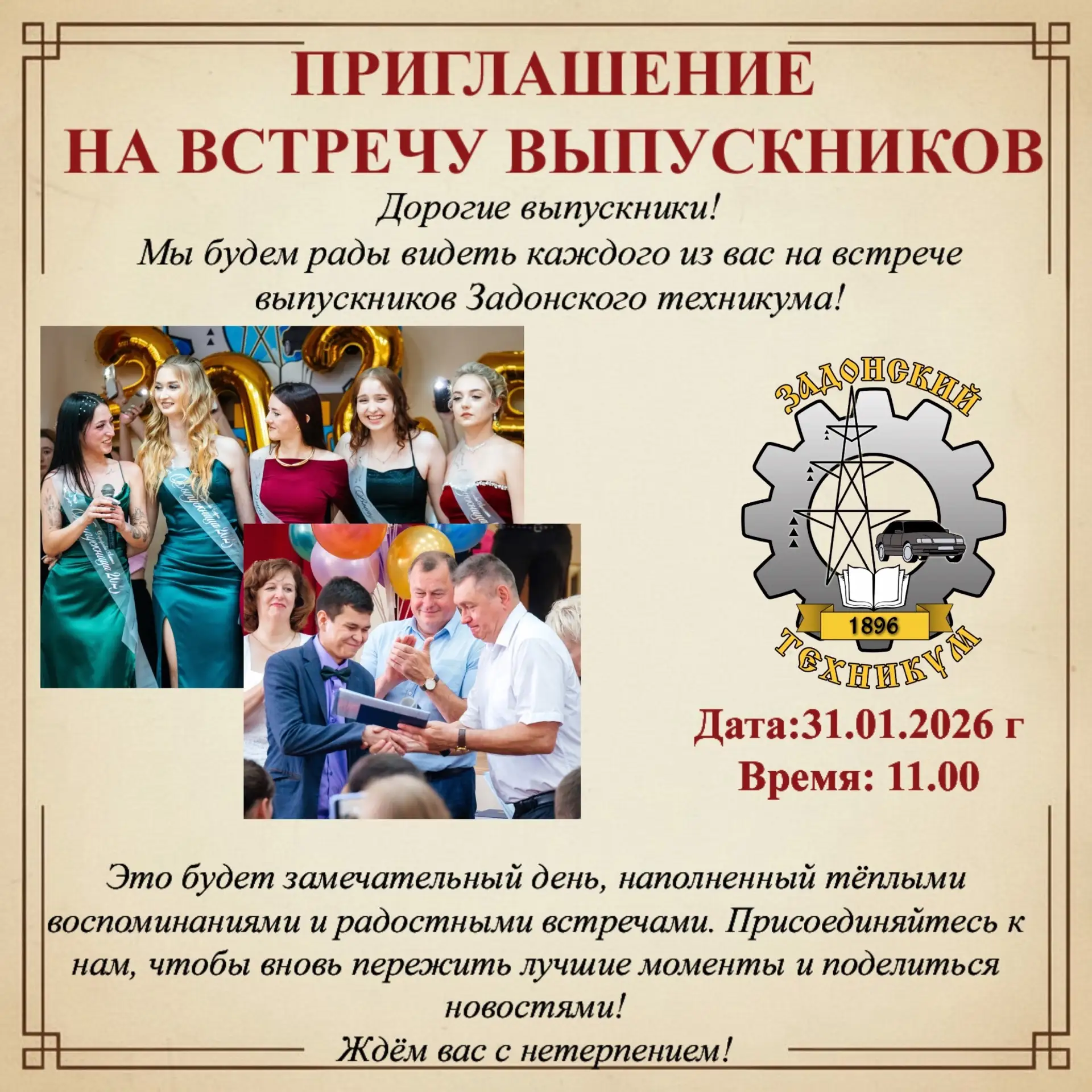 ➡️По традиции в последнюю субботу января (в этом году это 31 число) в Задонском политехническом техникуме в 13-й раз состоялся День встречи с выпускниками. Это событие открывает череду мероприятий, приуроченных к особой дате, – в 2026 году техникуму исполняется 130 лет.