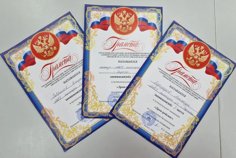 ❗️Поздравляем команду гимназии №1 г.Задонска, занявшую призовое место в муниципальном чемпионате "Дрон-рейсинг" по беспилотным летательным аппаратам-квадрокоптерам. В личном зачете Безбородов Александр занял 🥈 место! Гаврилов Владислав в личном зачете занял 🥉место! Благодарим Зуева Даниила Васильевича за подготовку команды! 🎉🎉🎉