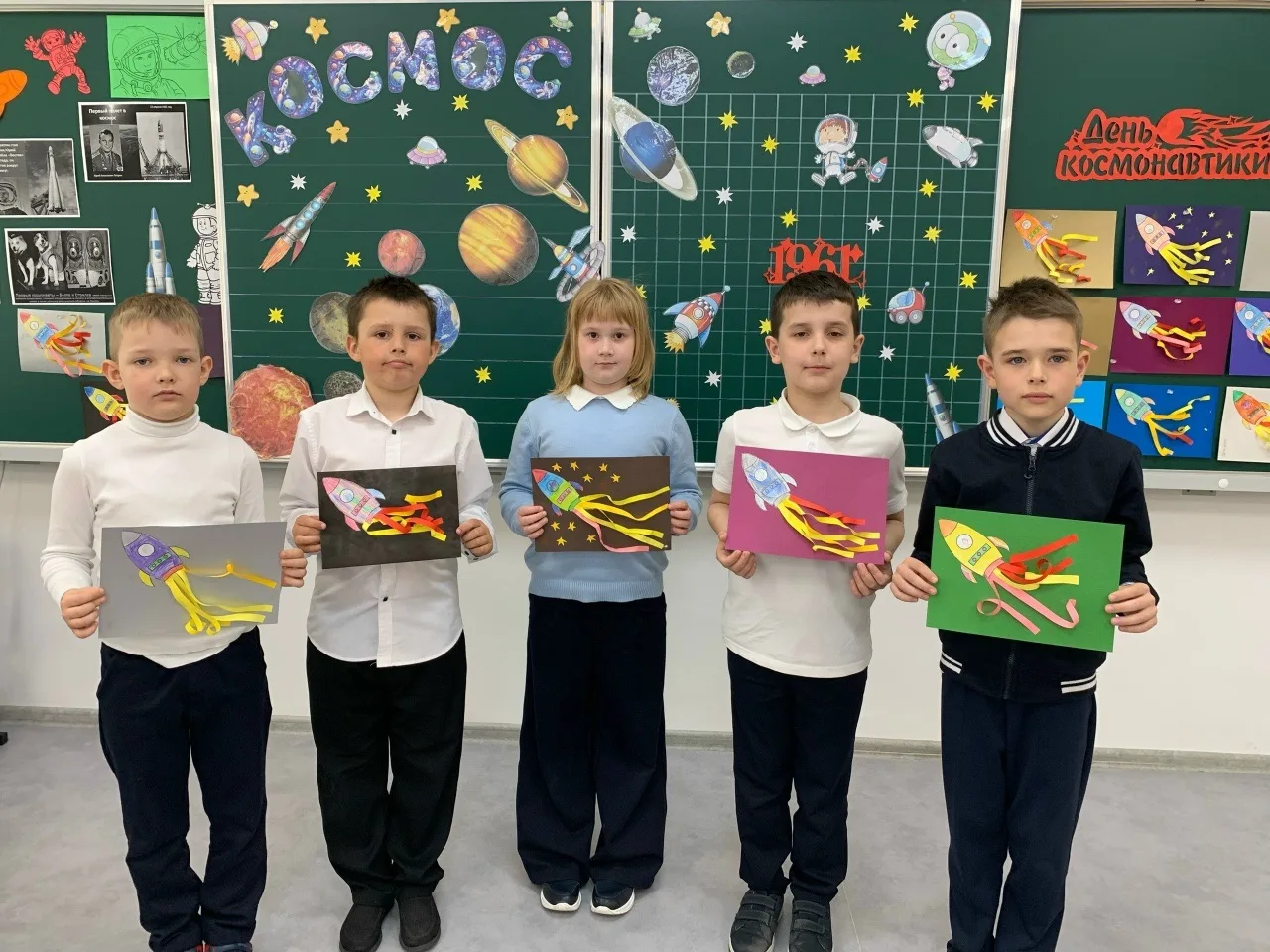 💫Школьники выполнили творческие работы ко Дню космонавтики.