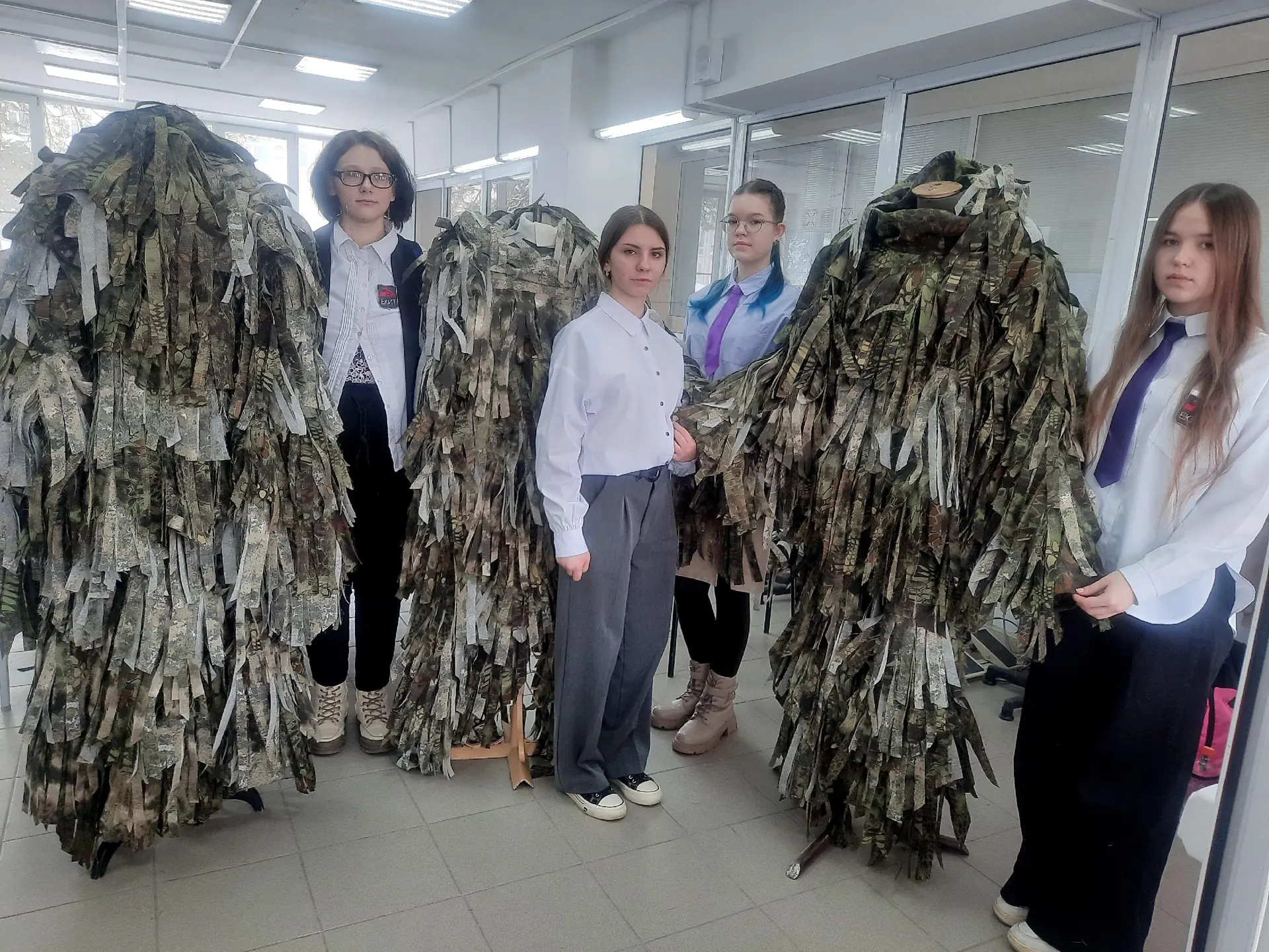 🧵🧶Студентки колледжа изготавливают для солдат маскировочные костюмы кикимора.