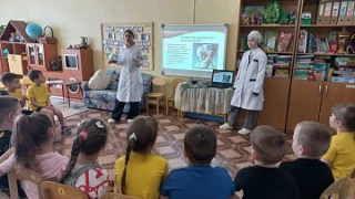 Коснулись девочки и темы вакцинации - доступной формой подачи информации для дошколят стала демонстрация мультипликационного фильма. По окончании занятия малыши раскрасили картинки с Айболитом, а также "превратили" с помощью цветных карандашей бактерии в пребиотики.