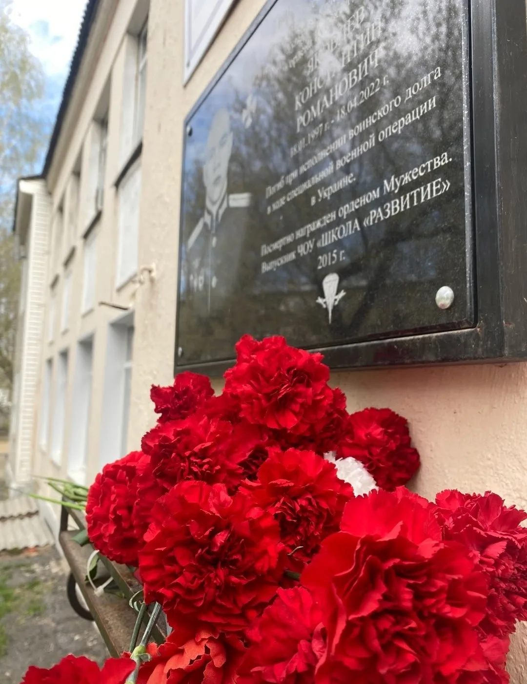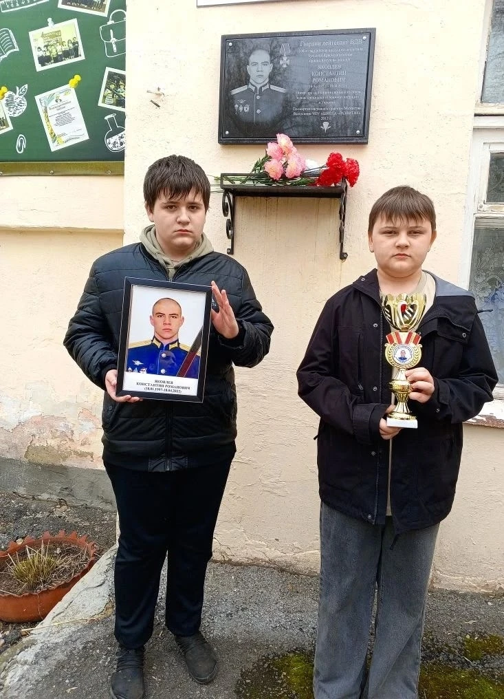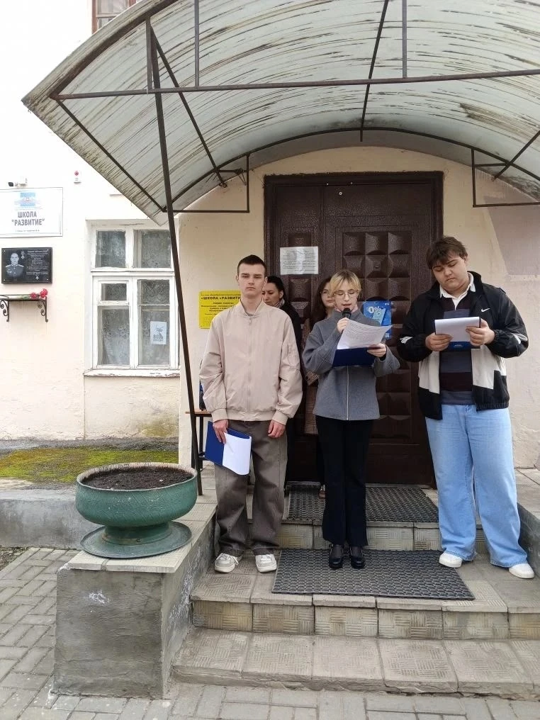 17 апреля 2026 года учебный день в ЧОУ «ШКОЛА «РАЗВИТИЕ» начался с митинга, приуроченного к годовщине гибели в ходе СВО выпускника 2015 года Яковлева Константина Романовича. Сотрудники и обучающиеся собрались у памятной доски, чтобы вспомнить русского офицера Константина.