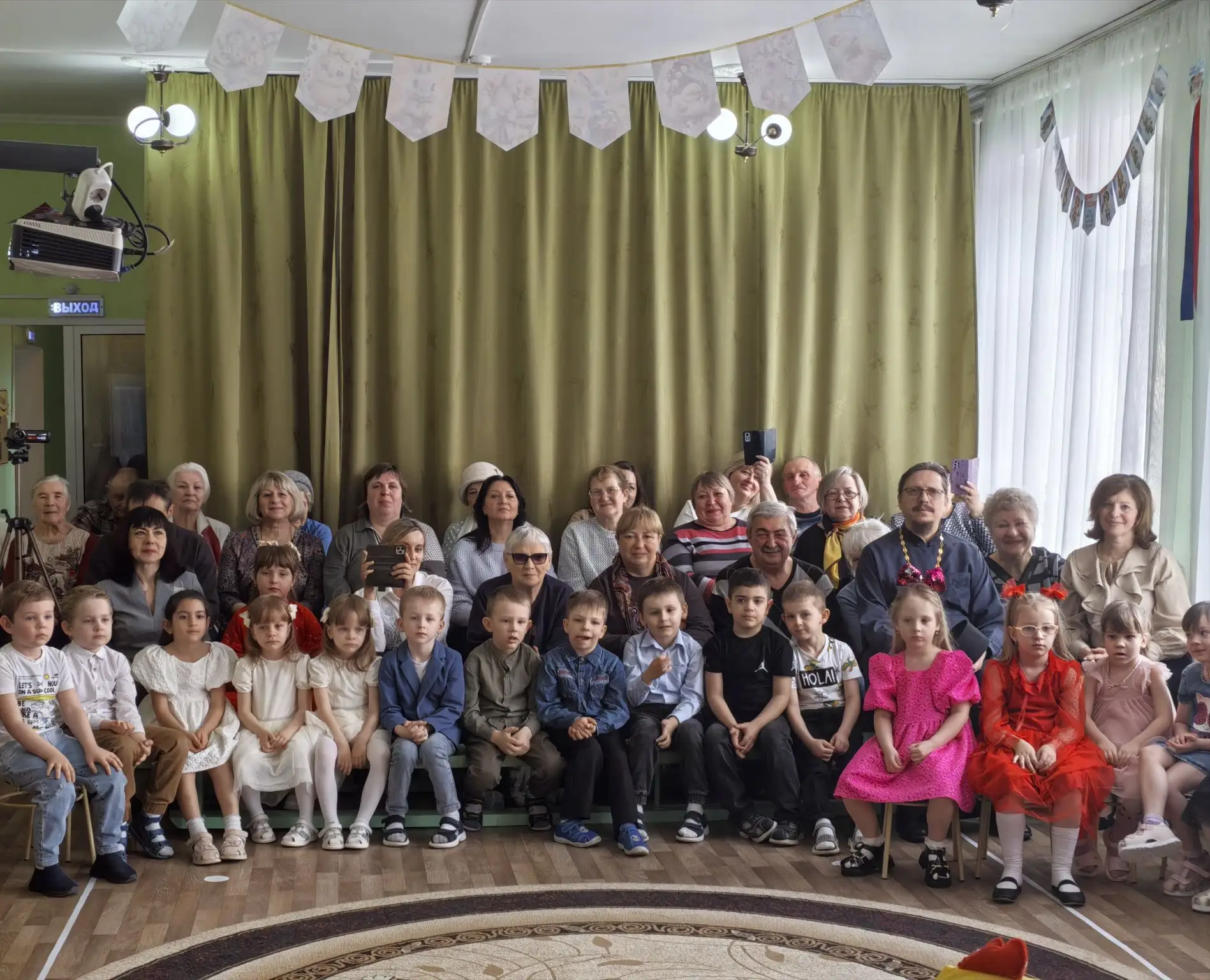 В заключение участники вместе исполнили знакомые песни «Смуглянка», «Московские окна» и песню «Крокодила Гены».