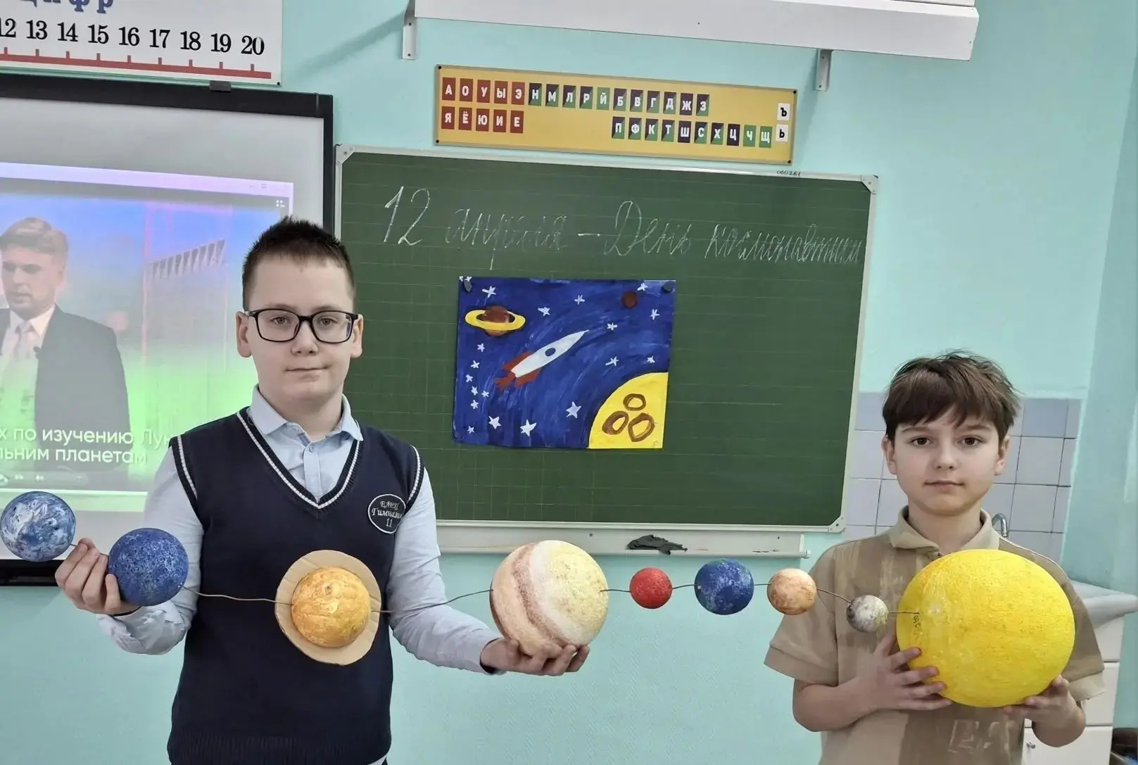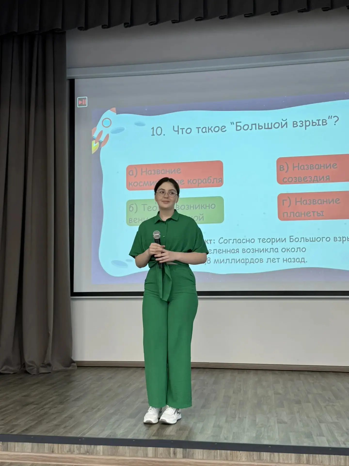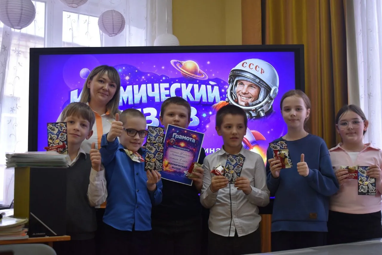 👨🚀Школьники соревновались, отвечая на вопросы о планетах Солнечной системы, о космонавтах и их позывных, о космических летательных аппаратах и живых существах, которые побывали в космосе.