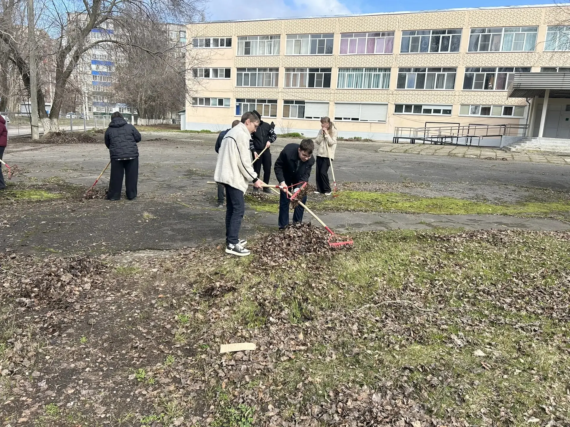 Педагоги, сотрудники школ и детских садов, дополнительного образования, а также активные обучающиеся дружно наводят порядок на территориях учреждений: убирают листву, мусор, готовят клумбы.