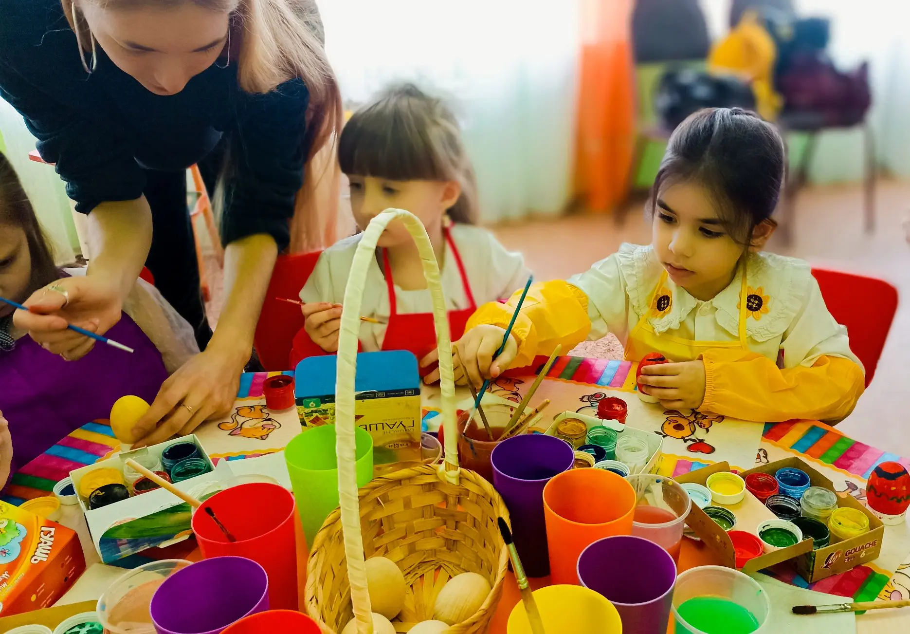 ✨ В рамках плодотворного сотрудничества между управлением образования городского округа город Елец, Елецким государственным колледжем искусств имени Т. Н. Хренникова и детским садом № 34 г. Ельца состоялся совместный мастер‑класс по росписи деревянных яиц.