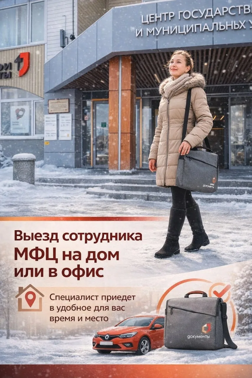➡️ Если у вас нет возможности лично посетить МФЦ для получения нужной услуги, вы можете заказать выездное обслуживание - на дом или в офис.