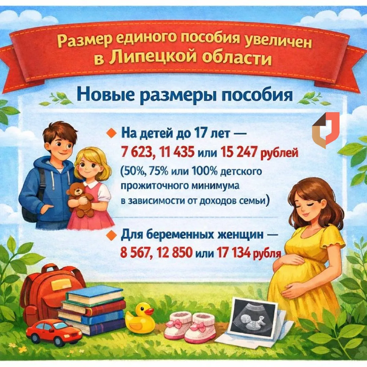 🔸 семье с ребёнком в возрасте от 0 до 17 лет