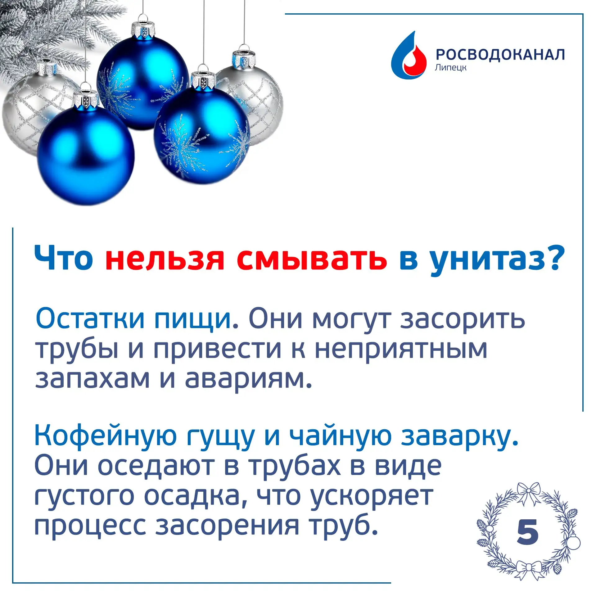 🌀В праздники наблюдается пик засоров канализации из-за повышенной нагрузки и неправильного использования сетей. Как обезопасить сети и встретить Новый год максимально комфортно, расскажем в наших карточках.