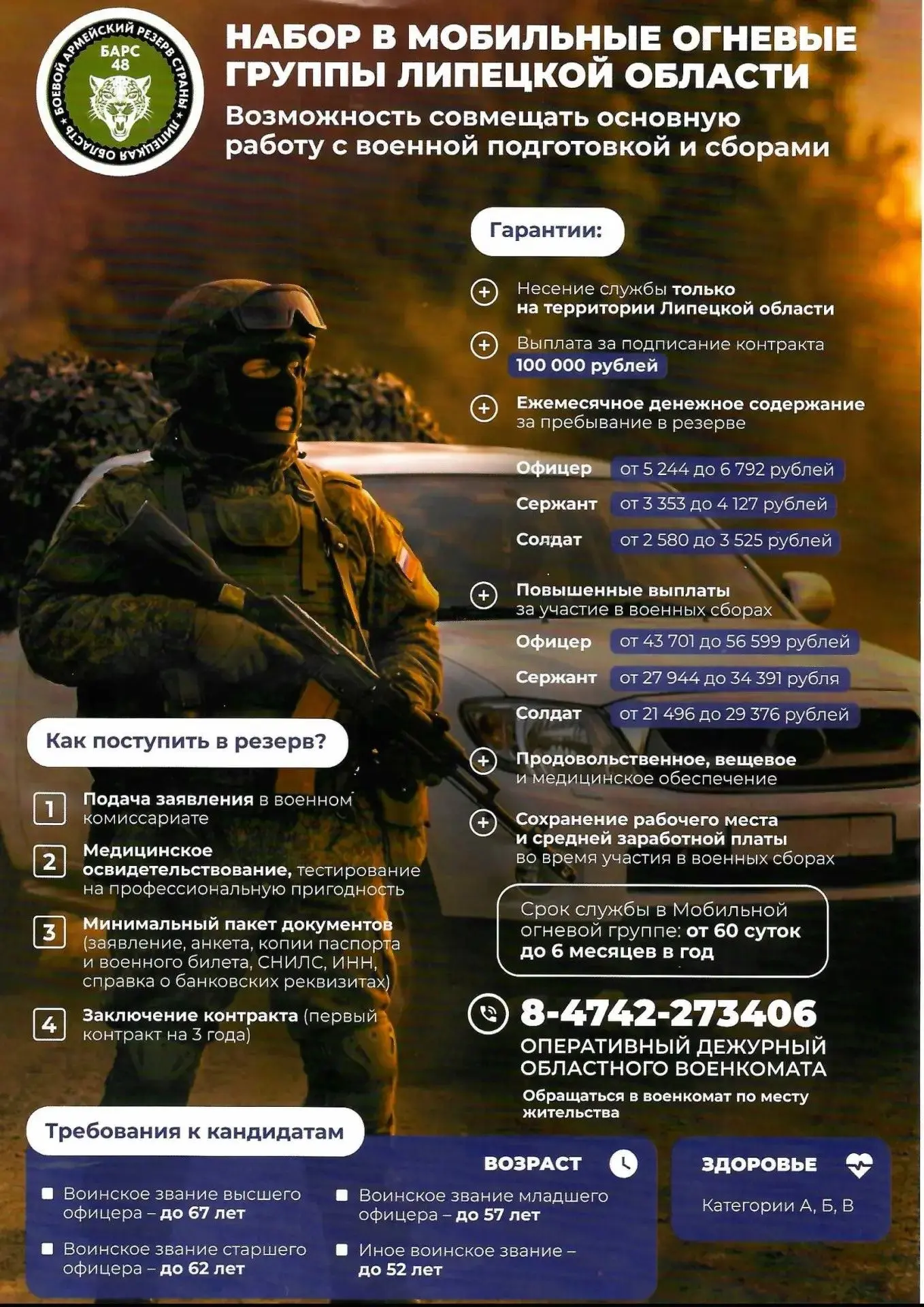 Два месяца интенсивной подготовки: современная техника, управление беспилотниками, работа в профессиональной команде. При подписании контракта предусмотрена единовременная выплата 1 500 000 рублей и повышенный оклад в период обучения. Через год контракт можно завершить или продлить.