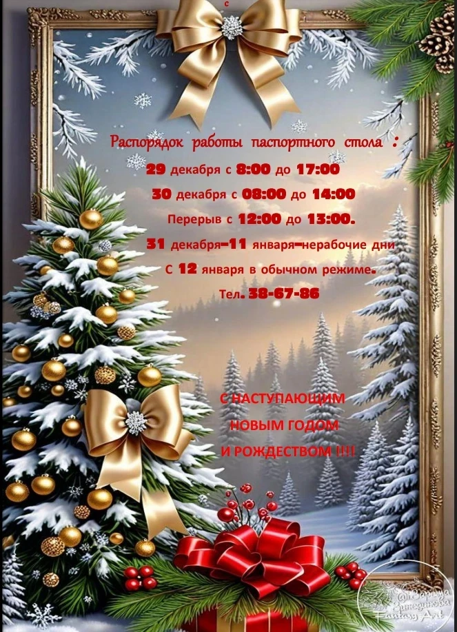 Уважаемые жители! В связи с болезнью паспортистки временно изменен режим работы паспортного стола. Часы приема: понедельник, среда, пятница - с 8.00 до 10.00; вторник, четверг - с 15.00 до 17.00