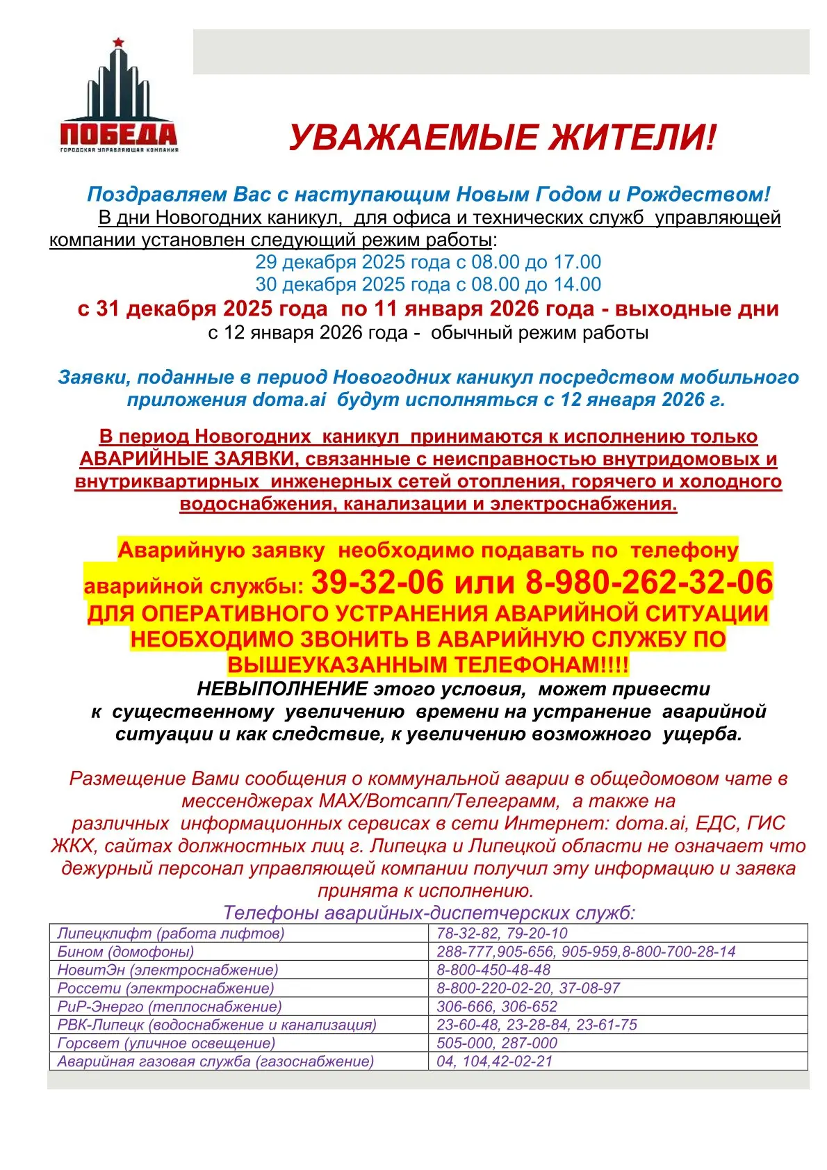 Канал для информирования жителей жилого фонда, находящегося в управлении ООО "ГУК "Победа" г. Липецк