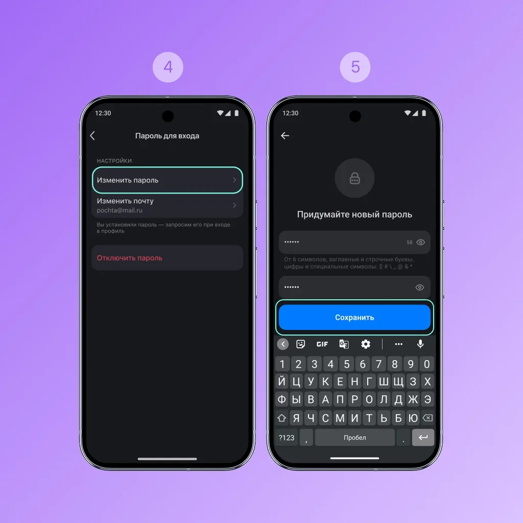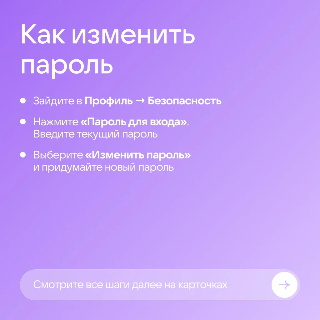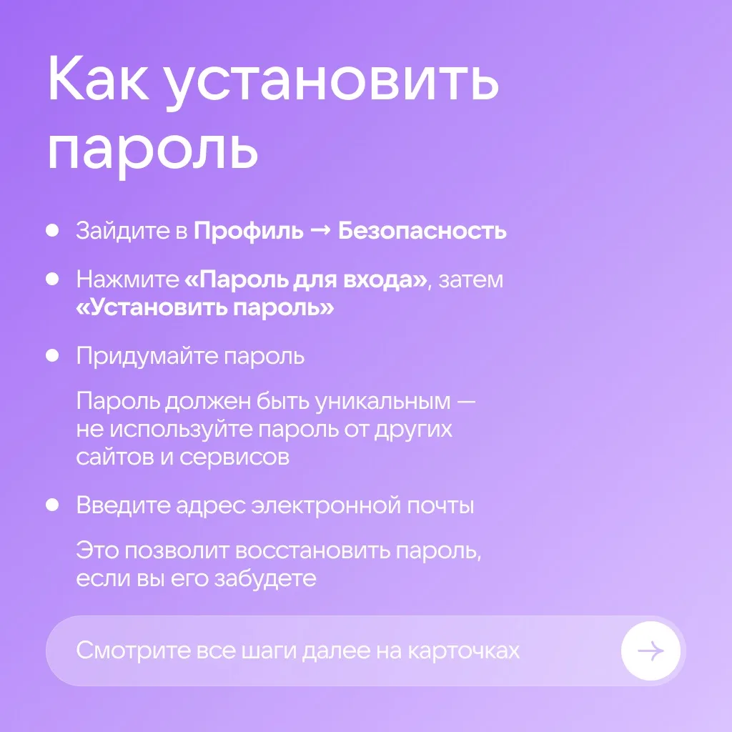 ➡️ Как установить или изменить пароль — смотрите в карточках.