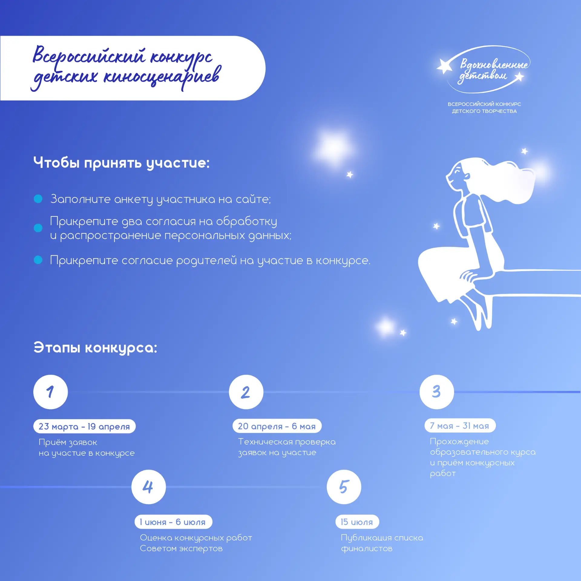 Стать участником Всероссийского конкурса детского творчества «Вдохновленные детством» вы можете на официальном сайте вдохновлённыедетством2026.рф.