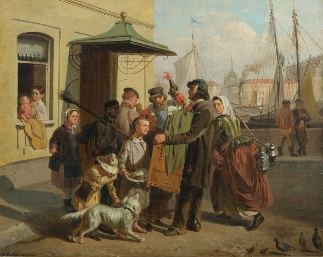 Это живая и многоголосая жанровая сценка, виртуозно передающая пеструю атмосферу повседневной городской улицы XIX века. Главным героем выступает бродячий музыкант, играющий на шарманке. На его инструменте сидит маленькая дрессированная обезьянка в забавном наряде.