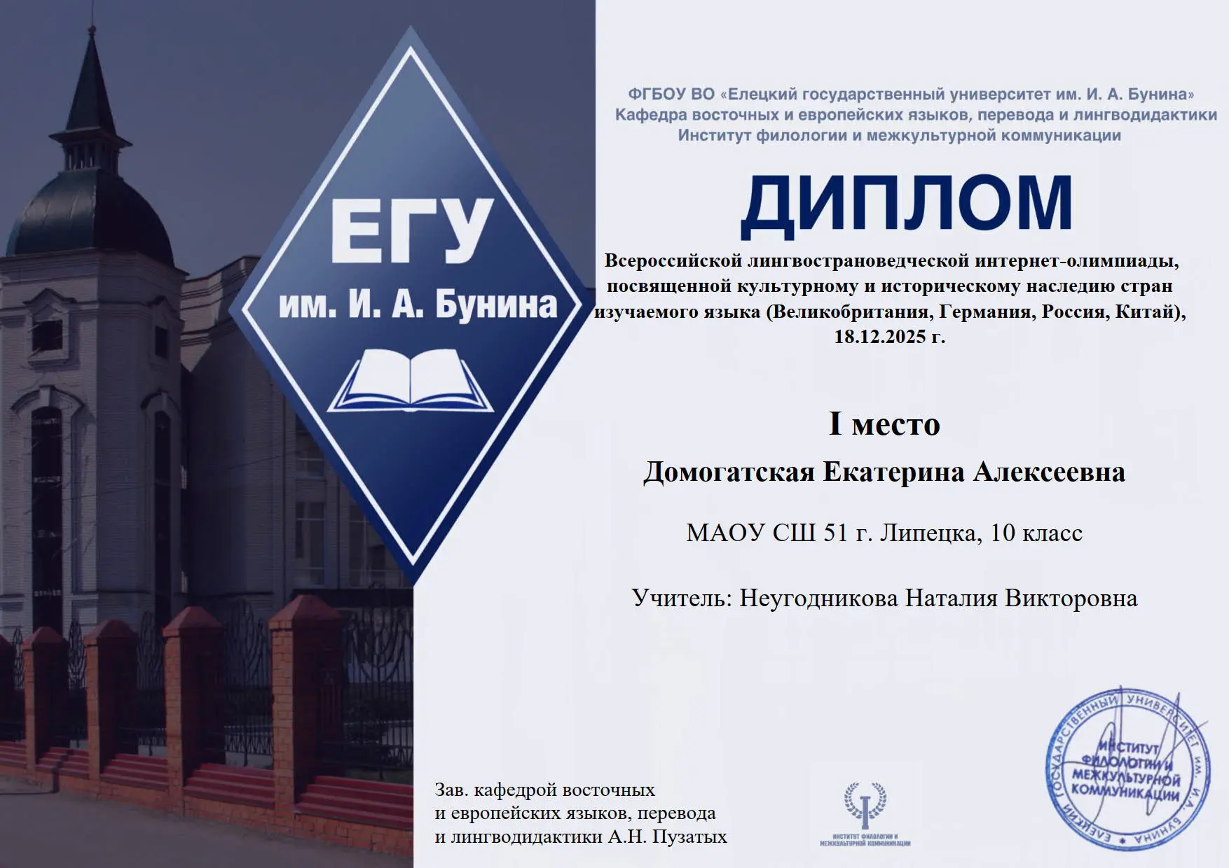 Домогатская Екатерина (10а, Неугодникова Н. В.);