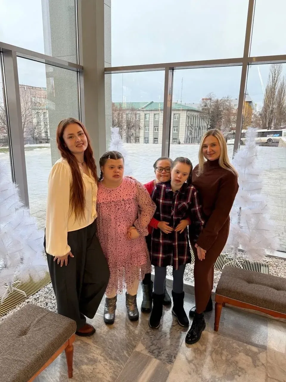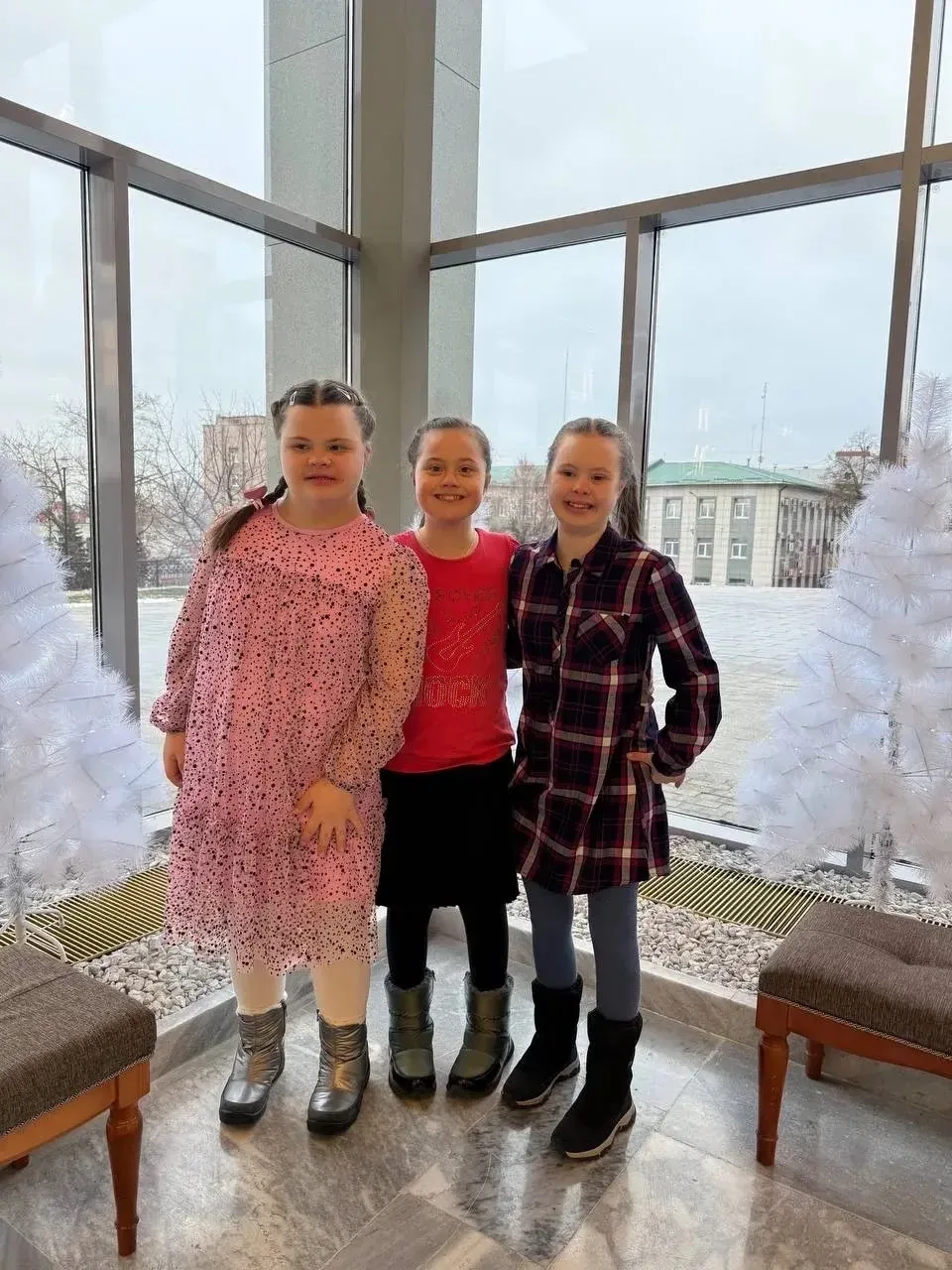 в фойе театра мерцали огни и радовали новогодние декорации.