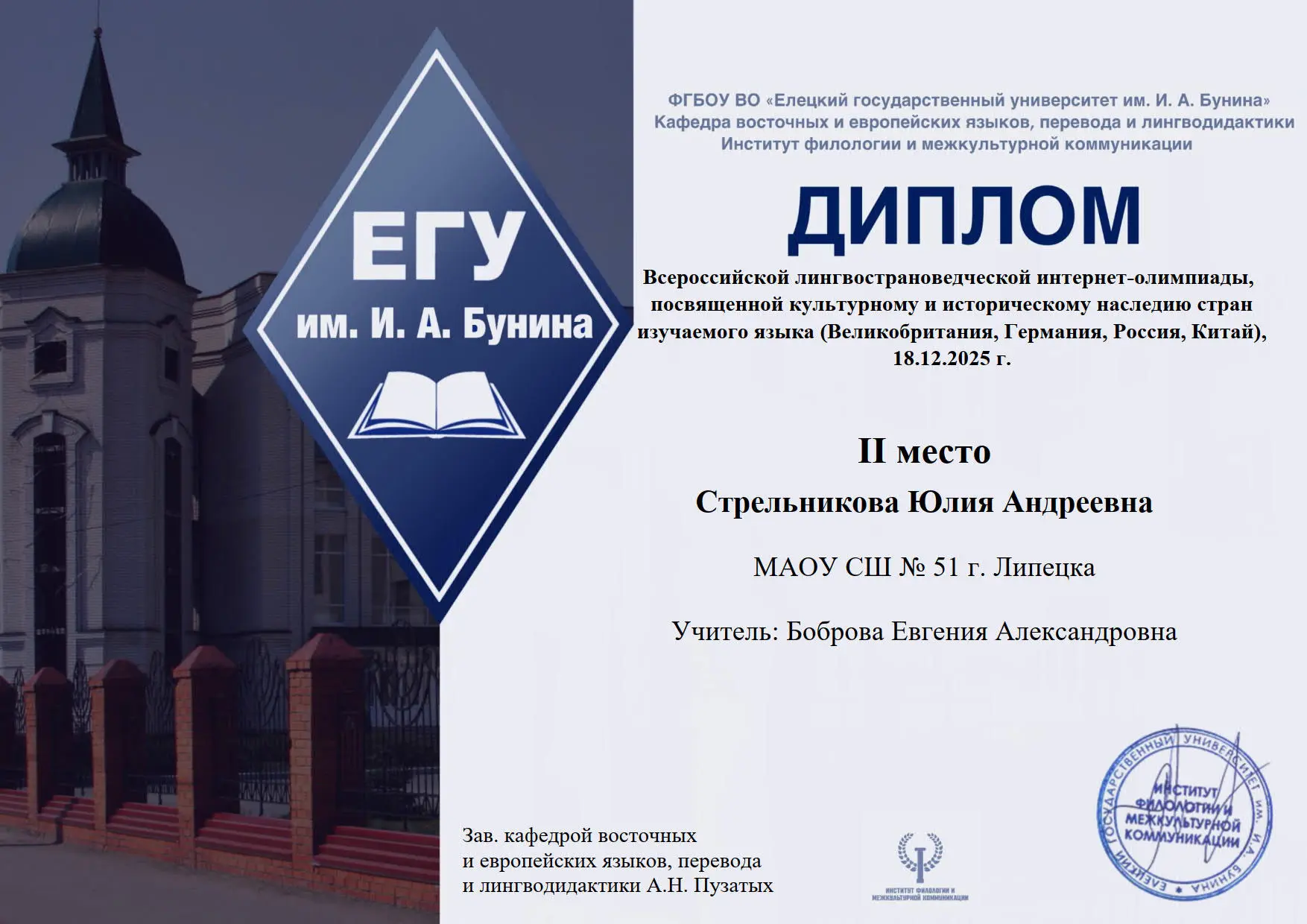 Стрельникова Юлия (10а, Боброва Е. А.);