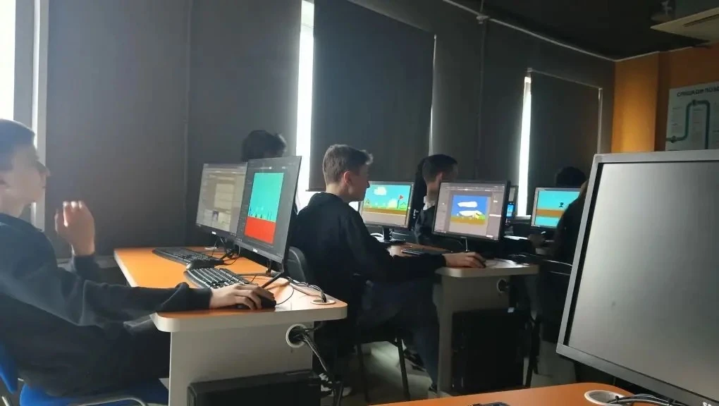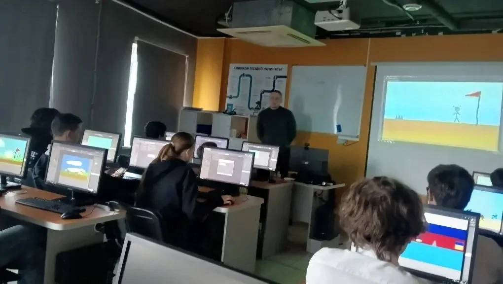 В практической части ребята попробовали себя в роли гейм-дизайнеров. Работали в программе Construct 3 - конструктор игр без кода, но с полноценной логикой.