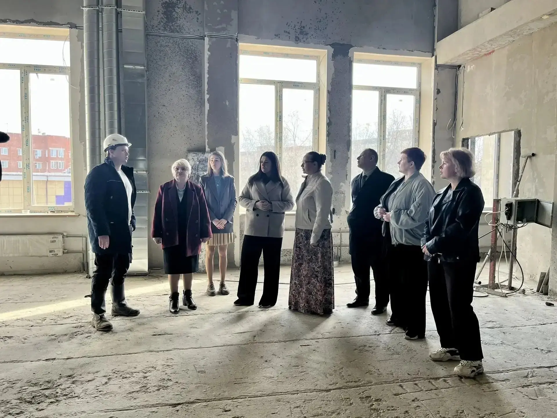 Представитель подрядчика Григорий Черназуб доложил о полном завершении демонтажа и финальной стадии штукатурных работ на втором этаже. Бригады приступают к прокладке инженерных сетей и благоустройству территории. График соблюдается, все работы идут в срок.