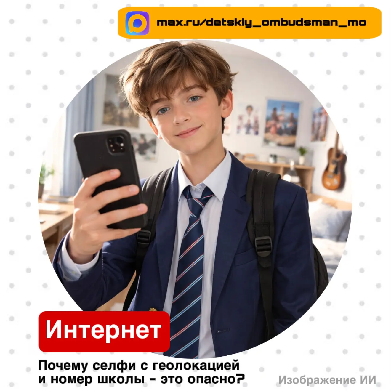 🔹 Сделайте правило: селфи в школьной форме — только дома или на нейтральном фоне, без привязки к месту.