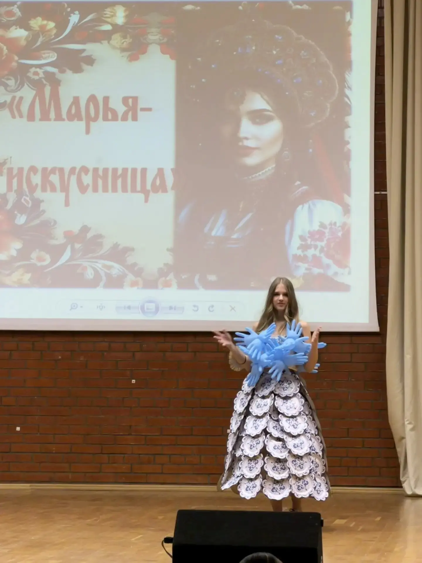 Конкурсанткам предстояло рассказать о себе членам жюри и зрителям, проявить талант, смекалку и эрудицию, мастерство в изготовлении костюма из экологичного материала.