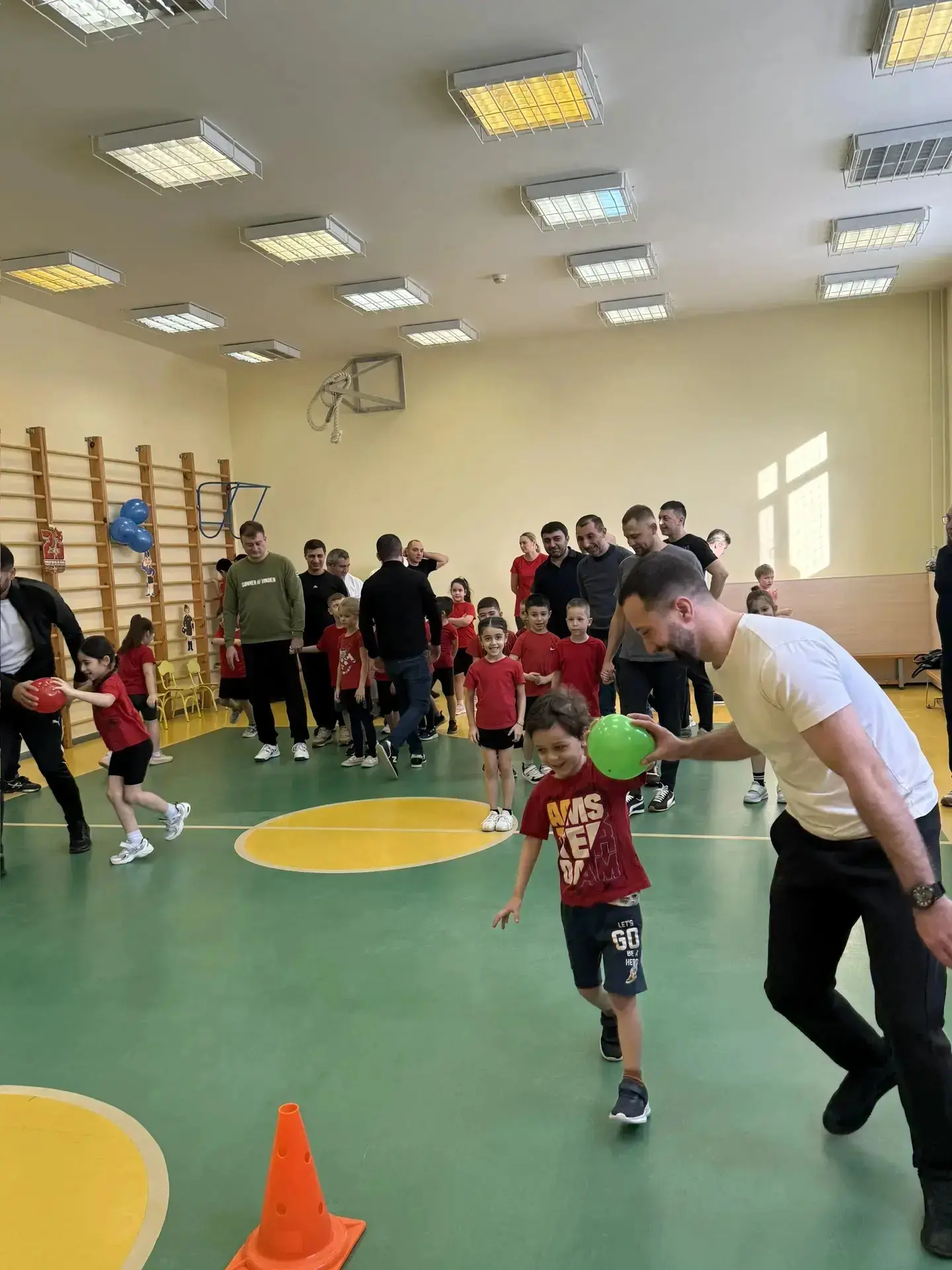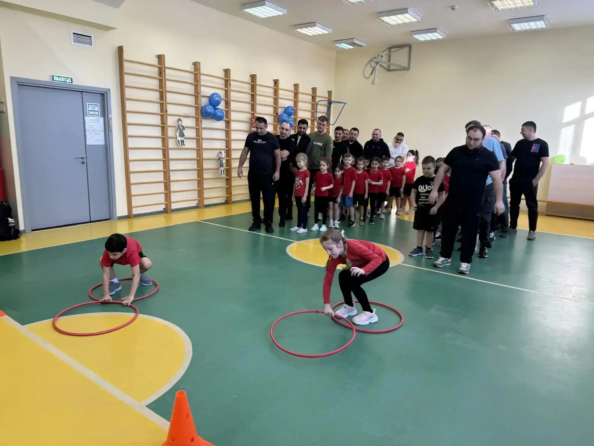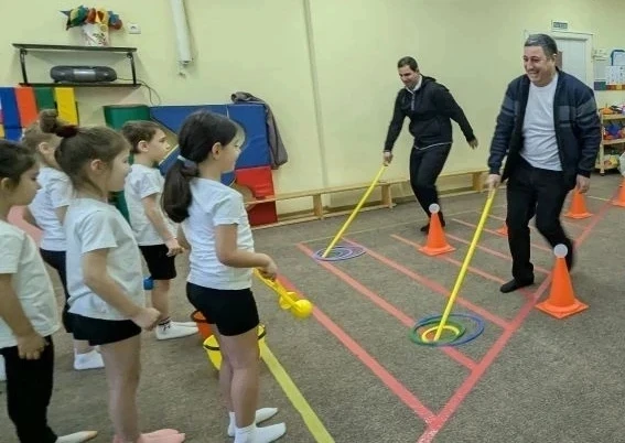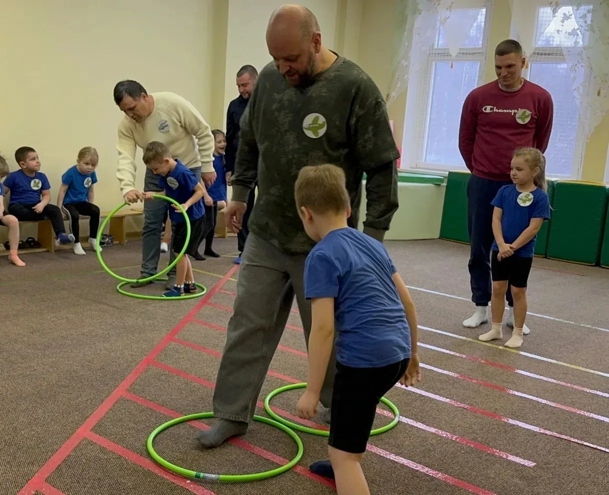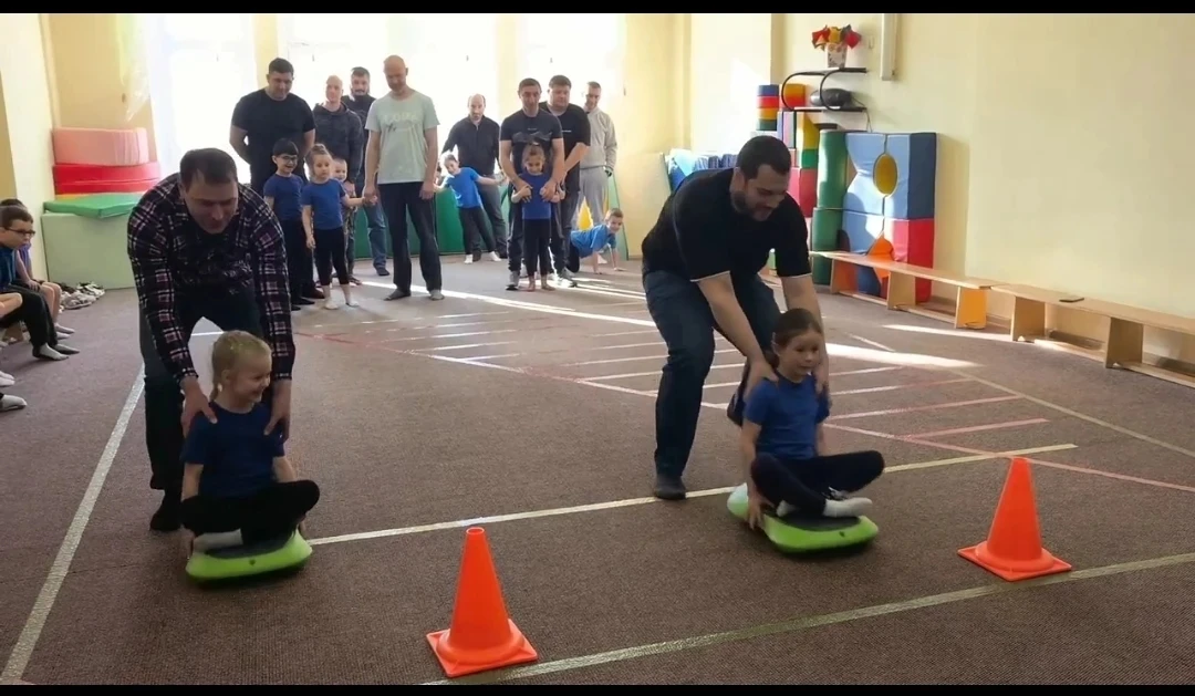 Дети вместе с папами преодолевали препятствия, участвовали в весёлых эстафетах и подвижных играх.