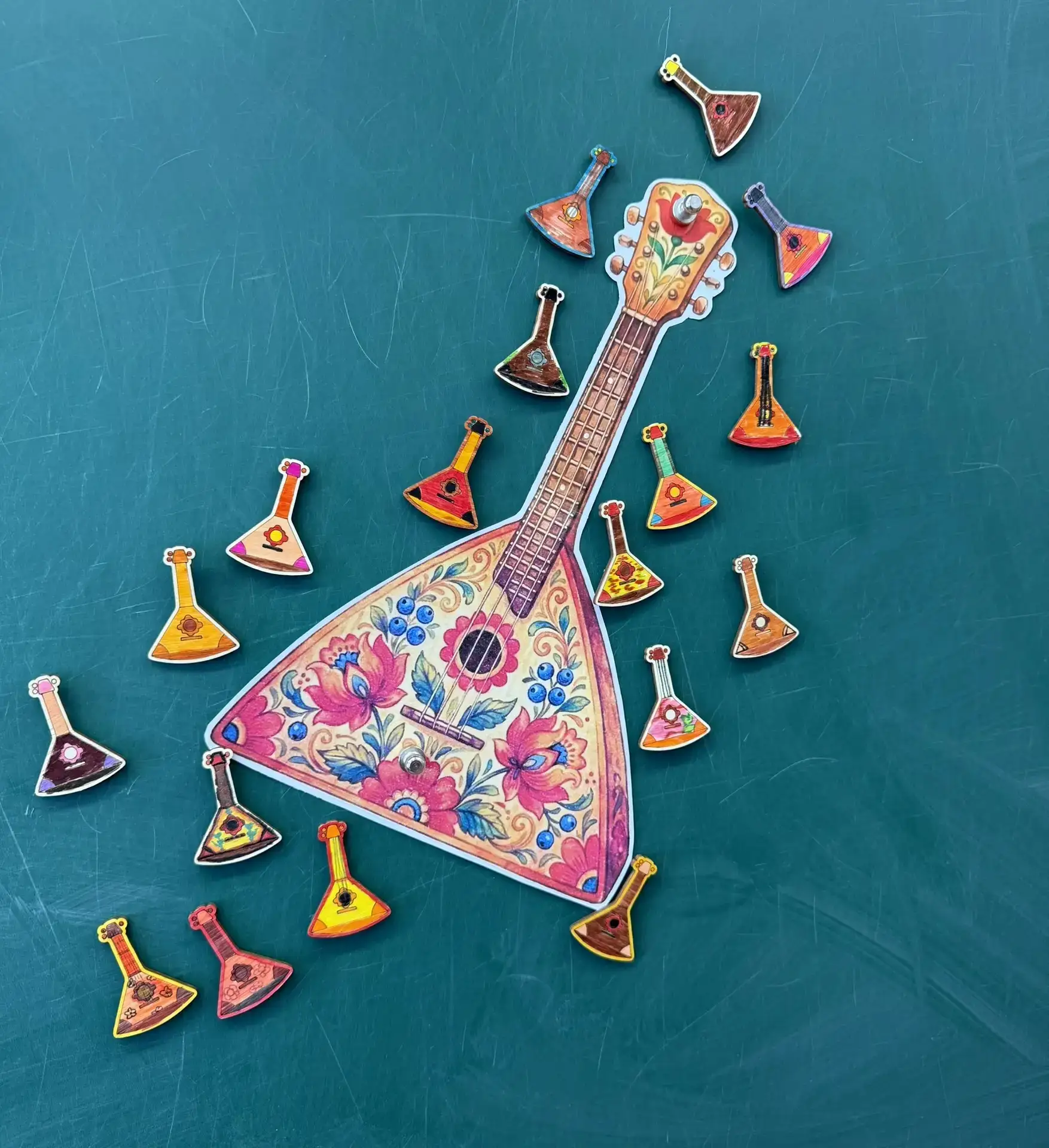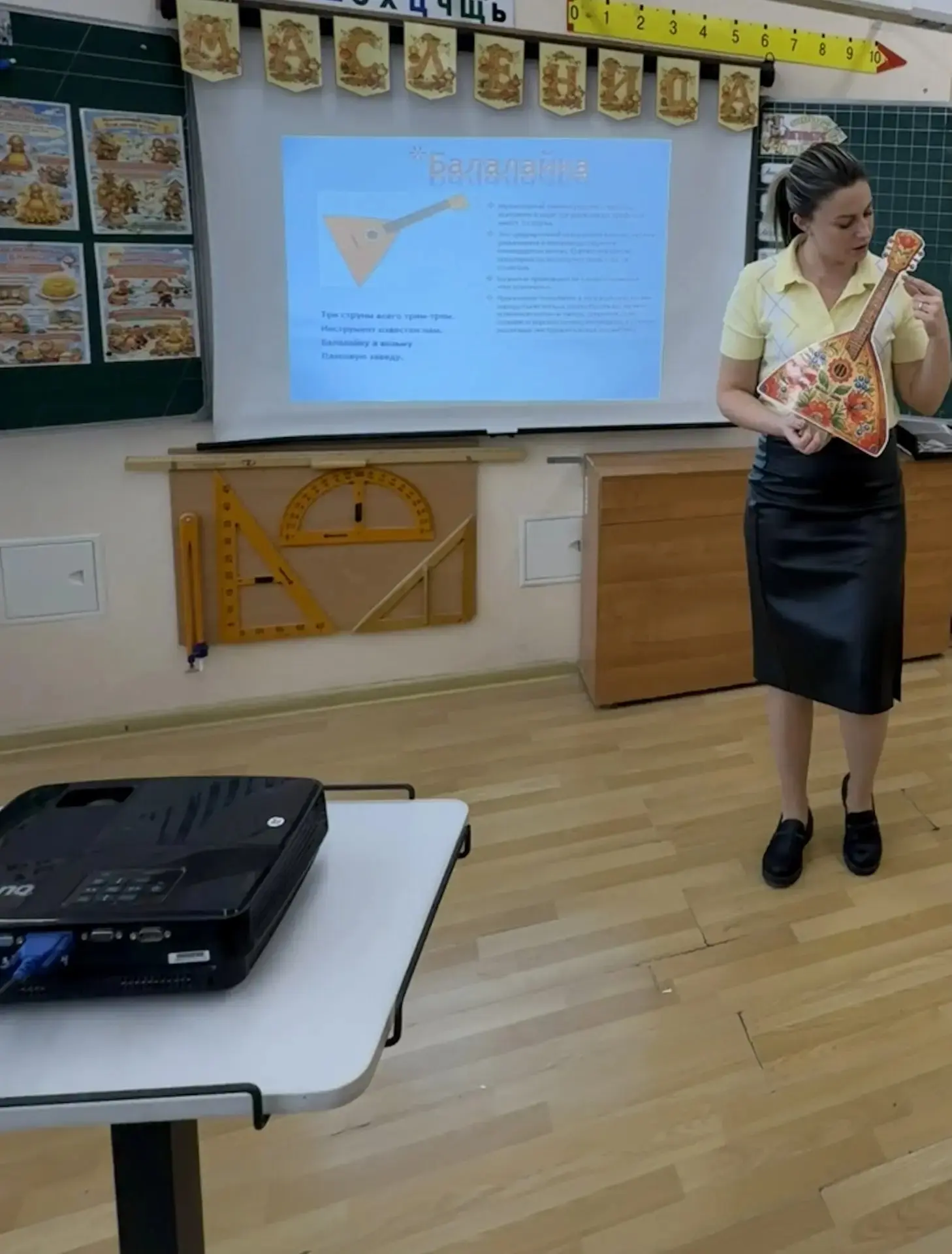 На уроке музыки ребята закрепили знания о русских народных струнных инструментах. В конце занятия учащиеся расписали деревянные балалайки.