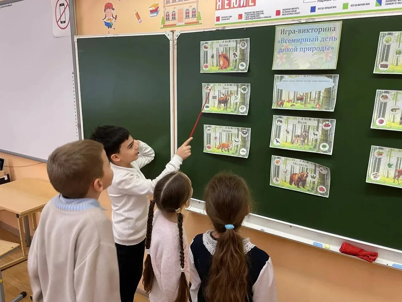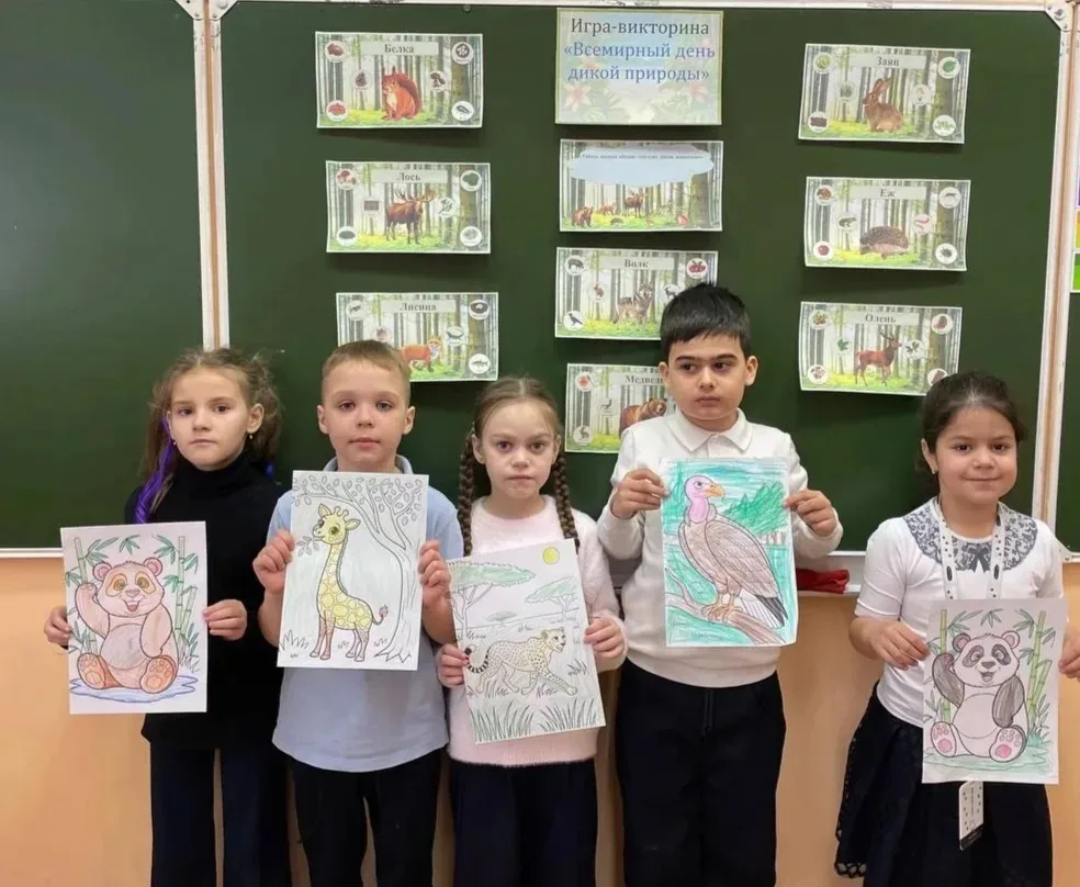 А знаете ли вы, что начало весны, а именно дата - 3 марта, посвящена Всемирному дню дикой природы? Этот экологический день учрежден, чтобы напомнить нам о многообразии и красоте природы и о необходимости беречь и защищать природу нашей планеты. В этот день, в 1 "Ж" классе, прошла беседа о редких и исчезающих видах животных и растений, с ребятами посмотрели познавательные презентаций о дикой природе, читали интересные факты о животных, вспомнили какие животные и птицы живут в нашей области, в нашем районе. Также провели игру-викторину «Всемирный день дикой природы». Ребята выполняли разные задания: собирали пазлы и раскрашивали картинки, а также отвечали на вопросы, связанные с пищевой цепью питания диких животных. В конце сделали вывод, что находясь на природе, строго нужно соблюдать правила экологического поведения, чтобы не причинить вреда природе и ее обитателям. И всегда нужно думать не только о себе, но и обо всем живом — чтобы и растения, и животные никогда не исчезли с лица Земли. Присоединяйтесь к празднованию Всемирного дня дикой природы! Давайте вместе беречь нашу планету!