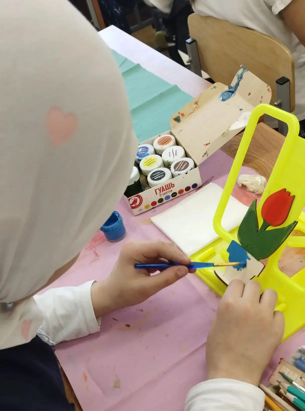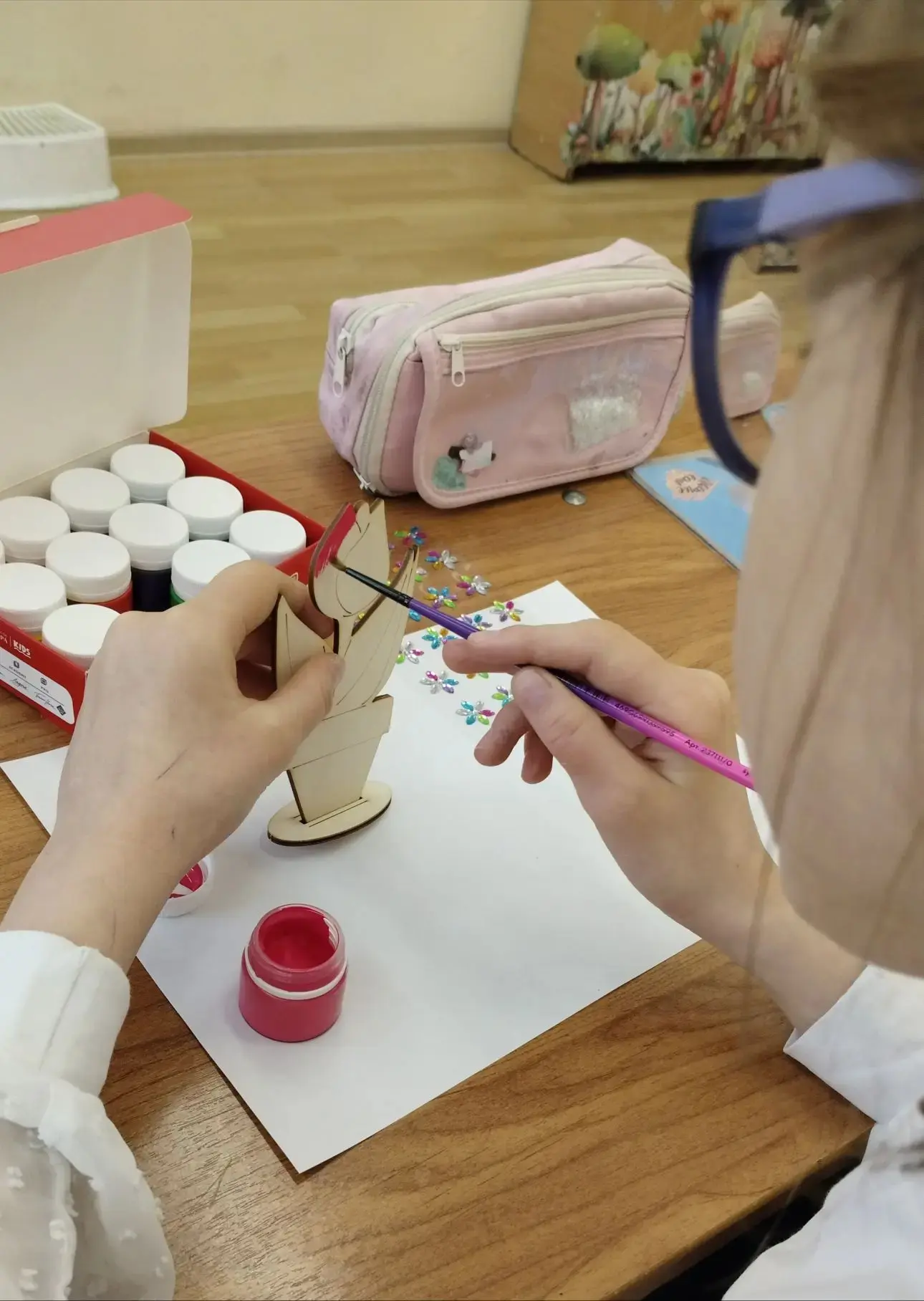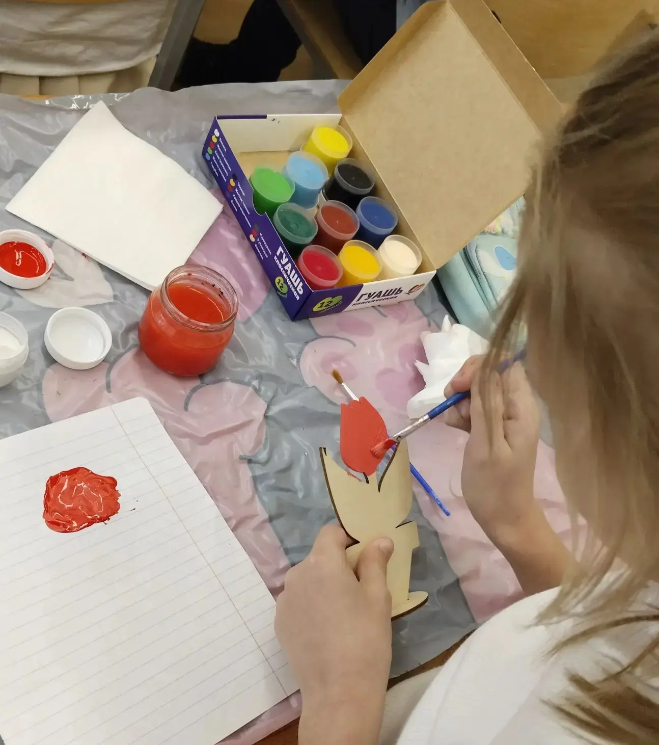 На мастер-классе ребята с энтузиазмом принялись за дело: они бережно раскрашивали деревянные шаблоны цветов гуашью. Каждый ребенок проявил свою индивидуальность, выбирая яркие и насыщенные цвета, что сделало каждую работу уникальной. Процесс раскрашивания был полон радости и веселья: дети обсуждали свои идеи, делились советами и вдохновляли друг друга на создание настоящих шедевров.