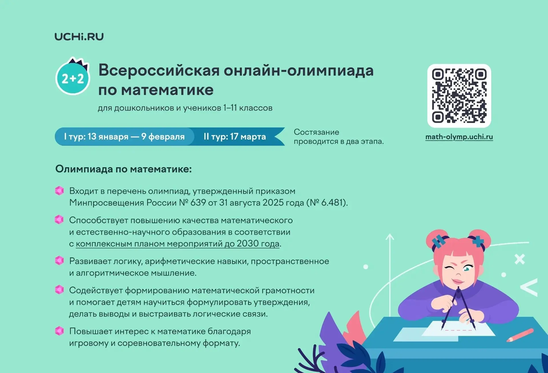 Приглашаем принять участие в Олимпиаде. Олимпиада по математике для дошкольников и учеников 1–11 классов 🙌