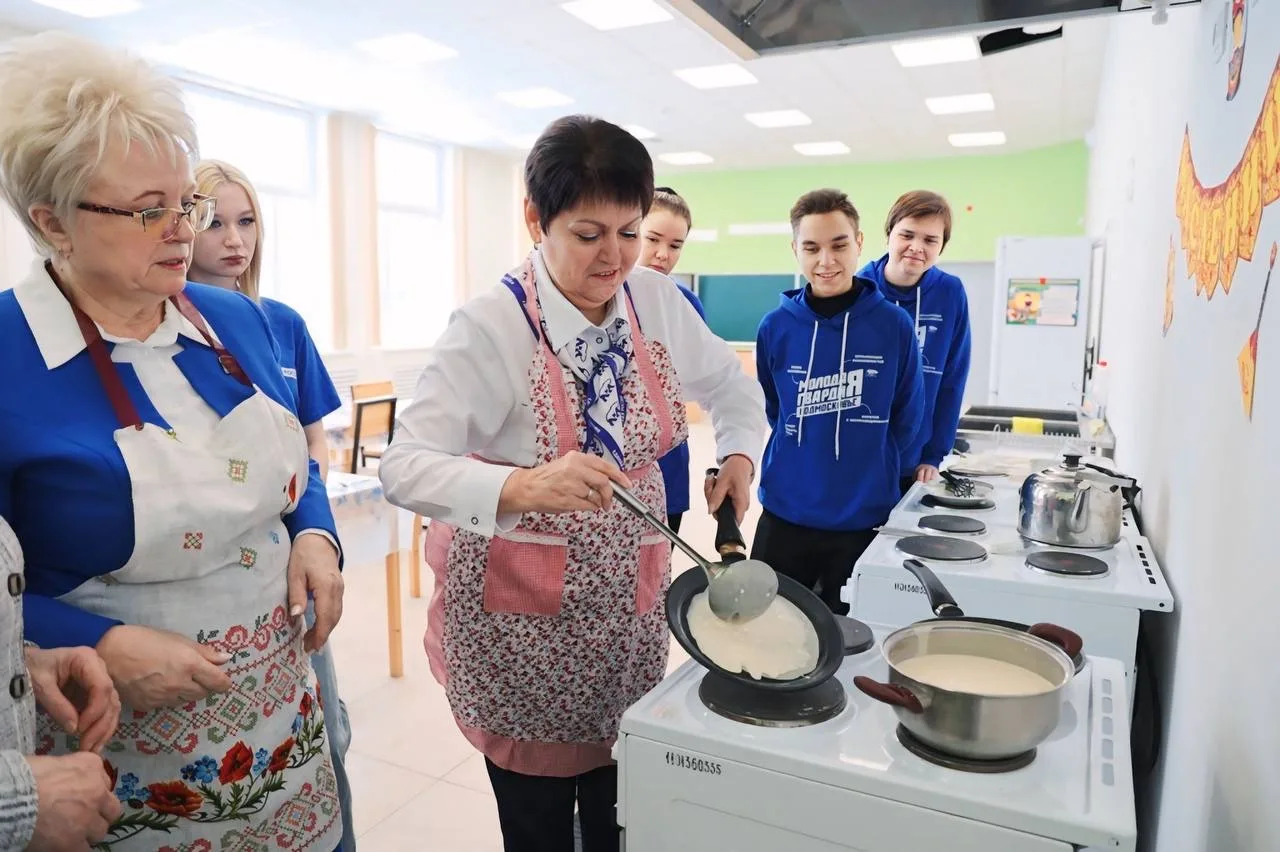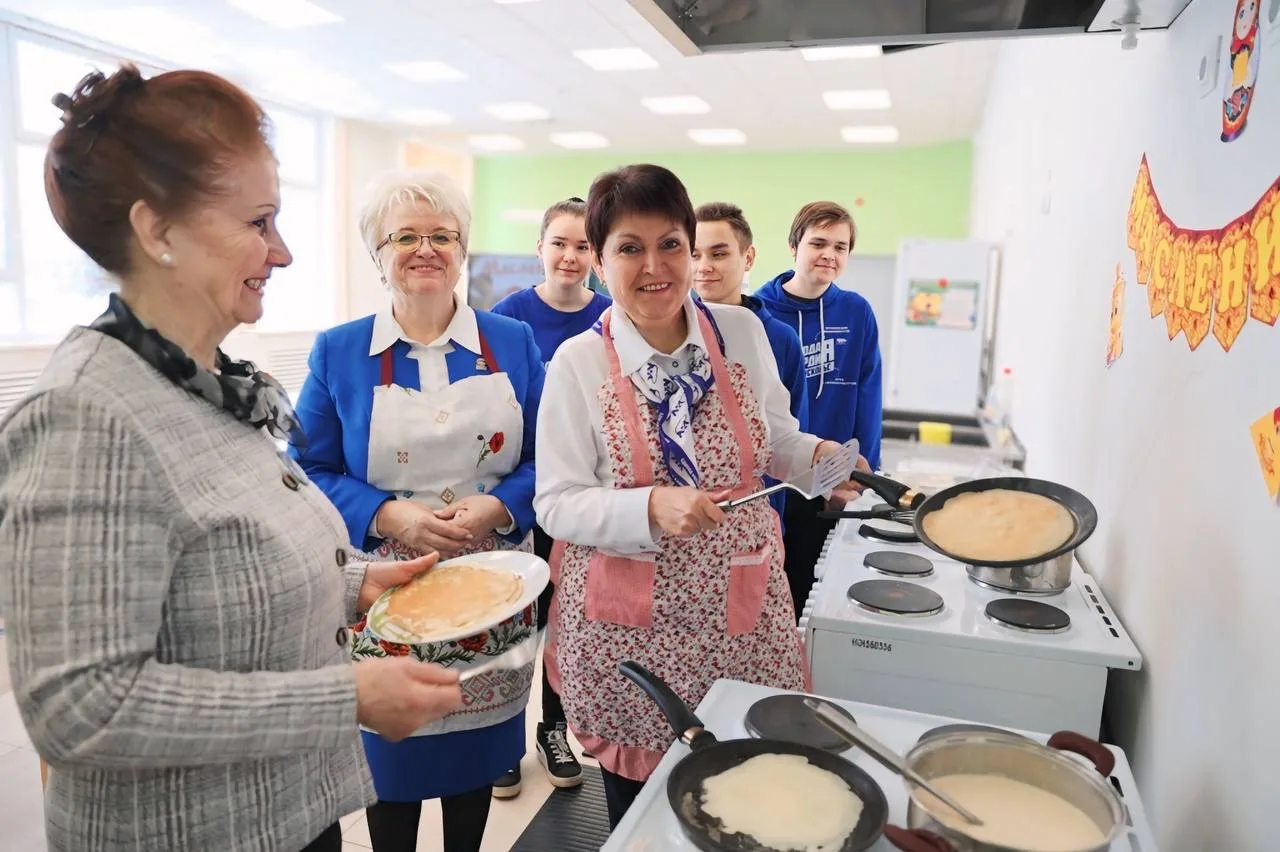 На базе школы № 3 вместе с депутатами фракции Татьяной Шаргаевой, Верой Бабушкиной и волонтёрами «Молодой Гвардии Единой России» провели мастер-класс по выпечке блинов в рамках инициативы «ПолитКухня». Готовили вместе, делились рецептами и просто общались в дружеской атмосфере.