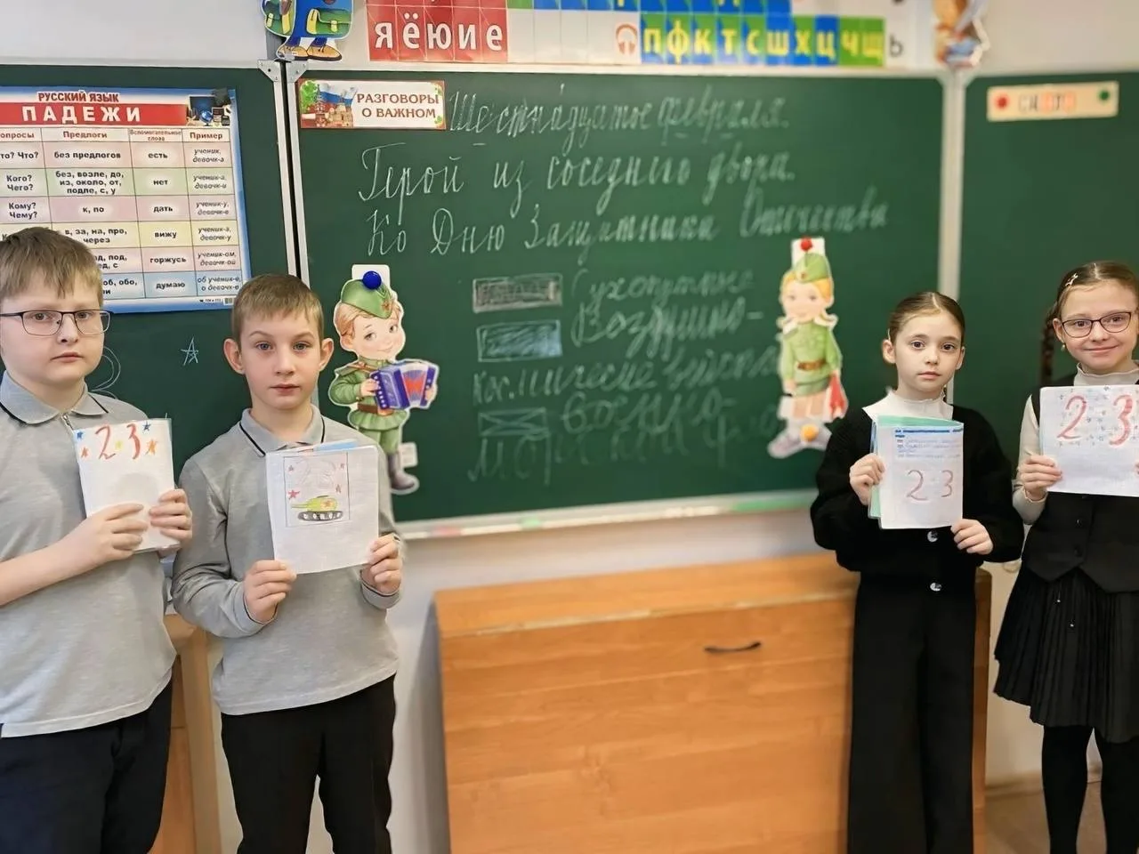 Новую учебную неделю в наших школах традиционно начали с «Разговоров о важном». Сегодня занятия посвятили теме предстоящего Дня защитника Отечества. Урок прошел под названием «Герой из соседнего двора».
