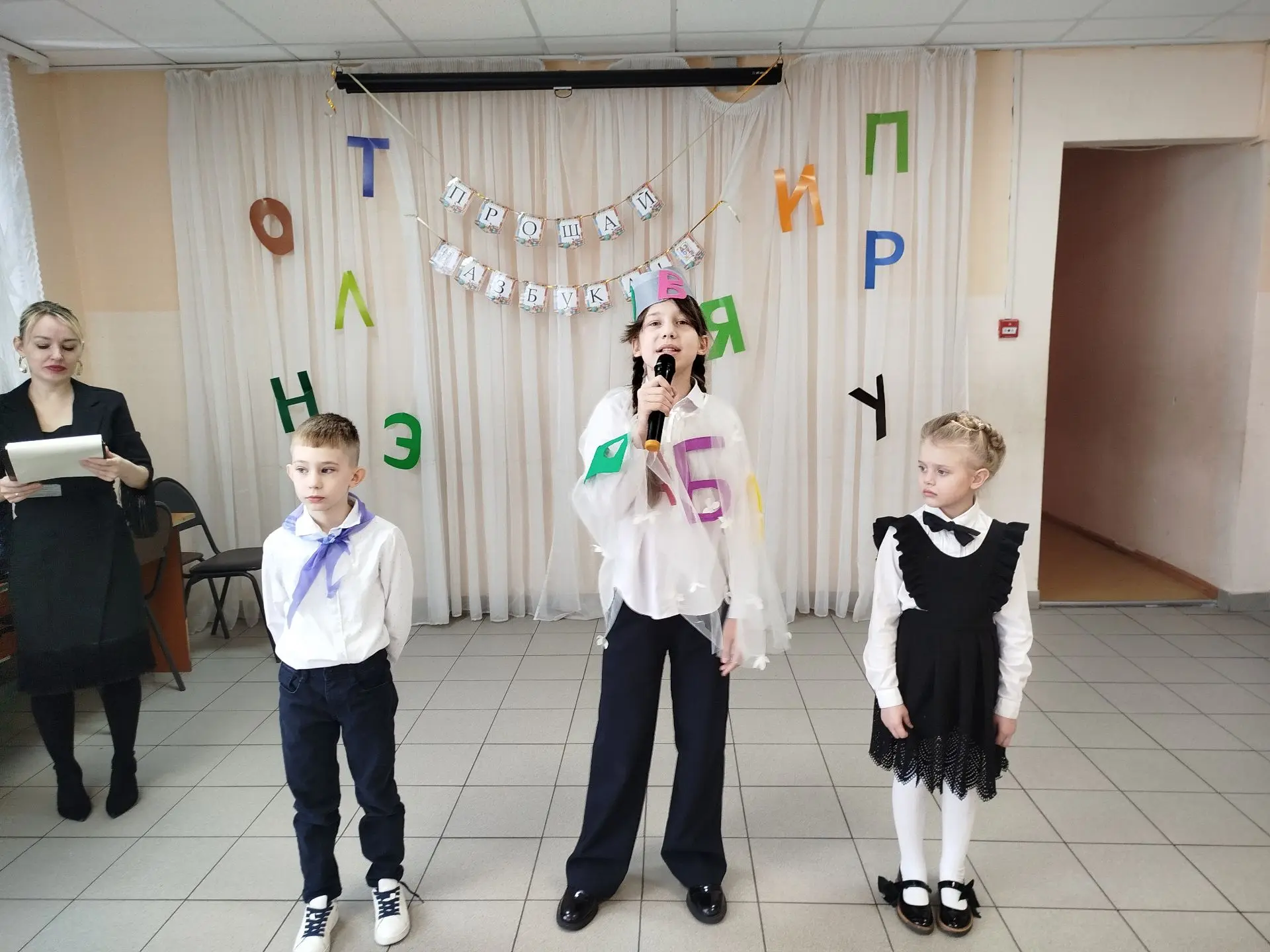 В начале праздника Азбука проверила знания ребят. Первоклассники с честью выдержали экзамен: вспоминали алфавит, составляли слова из разрозненных букв и читали сложные скороговорки. Убедившись, что её ученики готовы к новым знаниям, Азбука тепло попрощалась с ними, пожелав не забывать буквы, с которых начинался их путь.