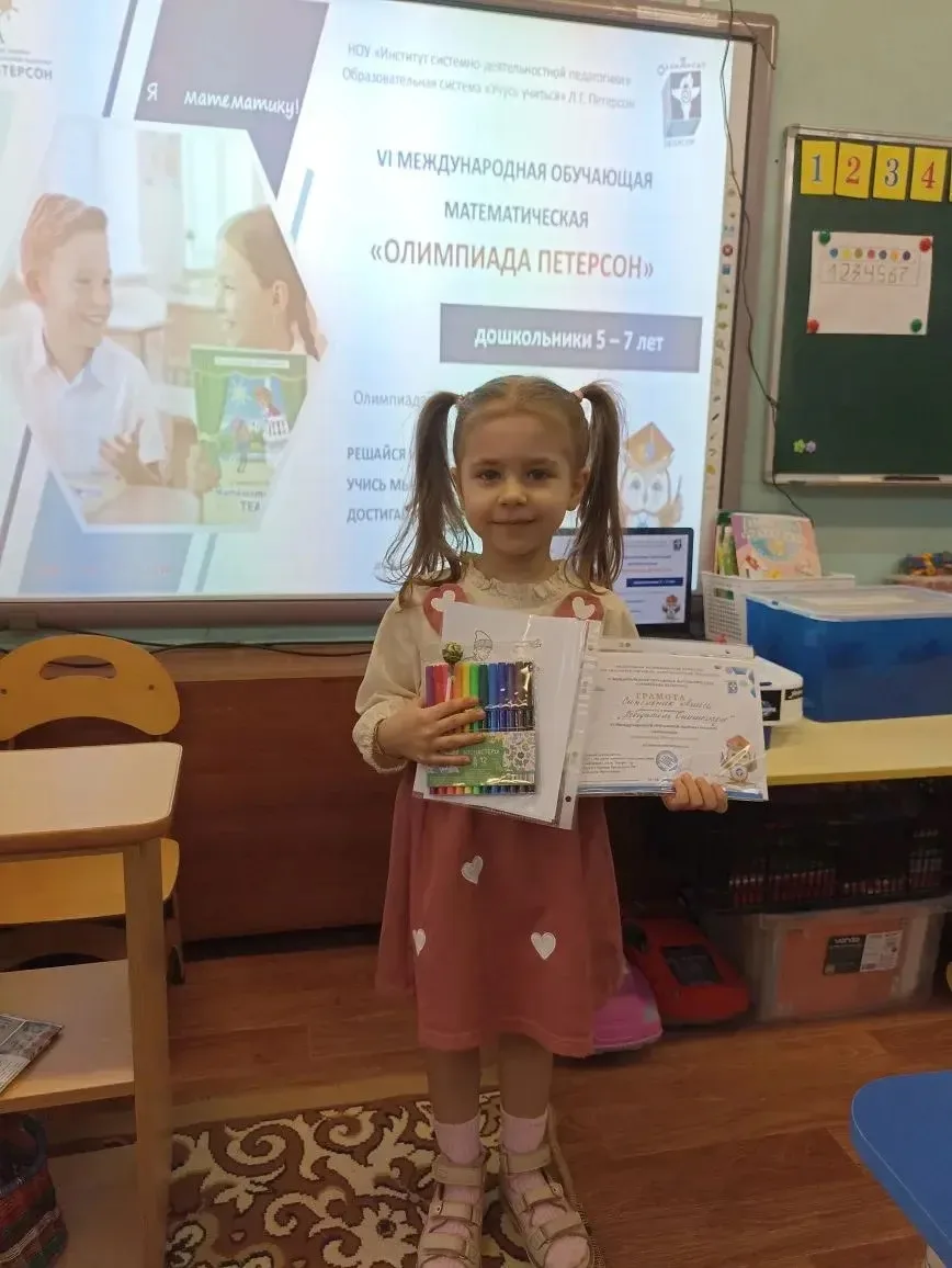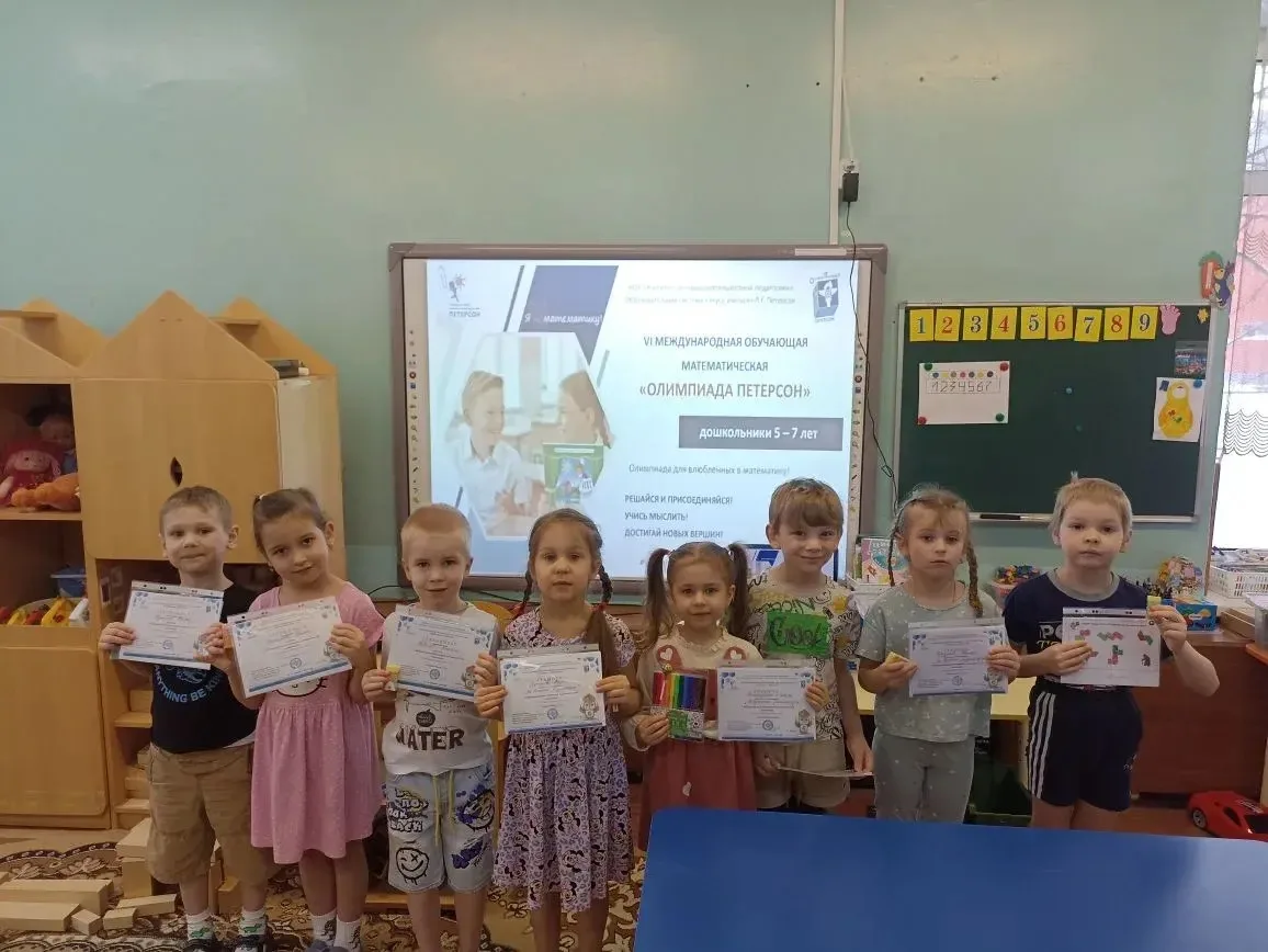 11 февраля в МОУ "Лицей 23" СП ДГ «Карусель» дети подготовительной к школе группы "Улыбка» впервые приняли участие в Vl Международной обучающей математической «Олимпиаде Петерсон -2026».