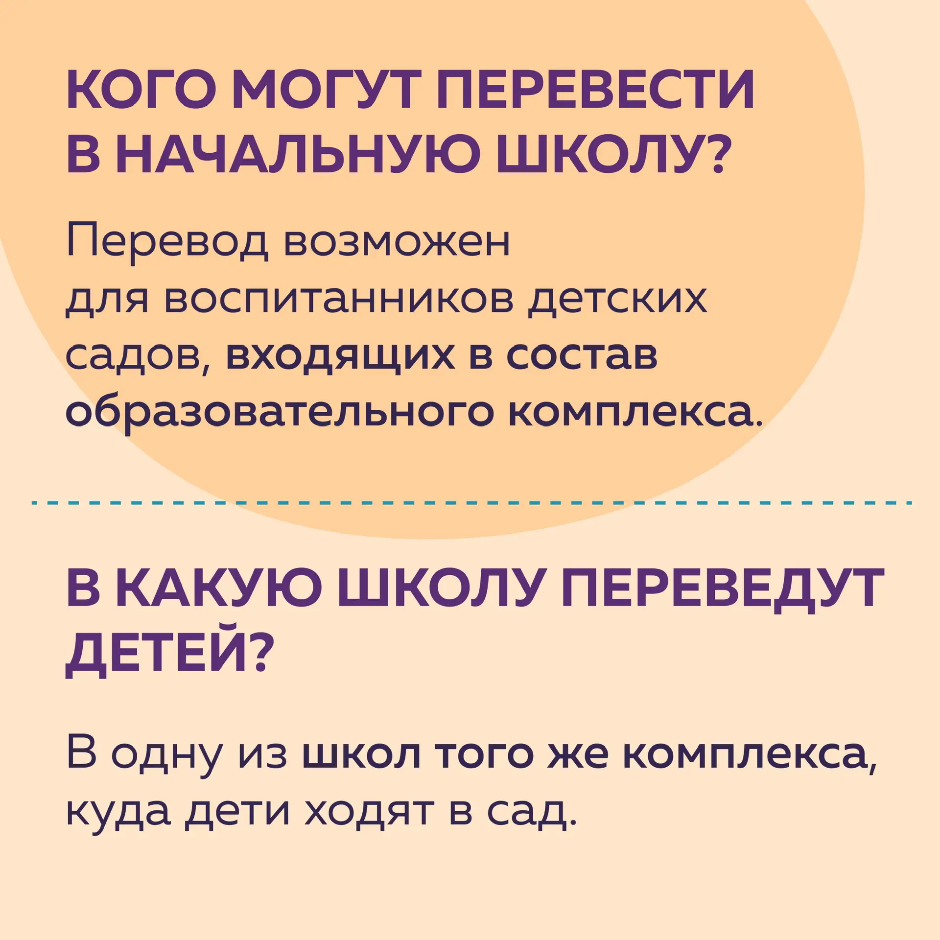 Для воспитанников детских садов в образовательных комплексах доступен перевод в начальную школу.