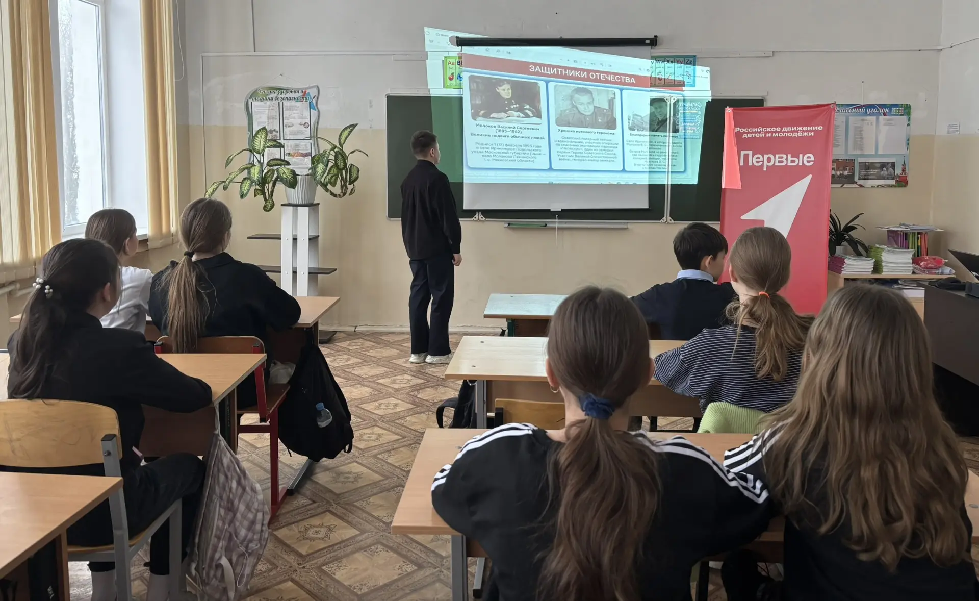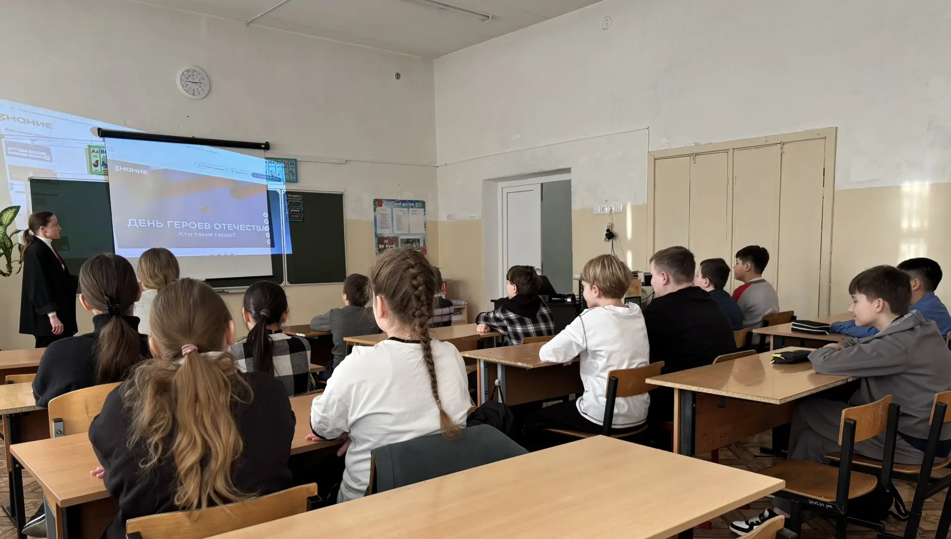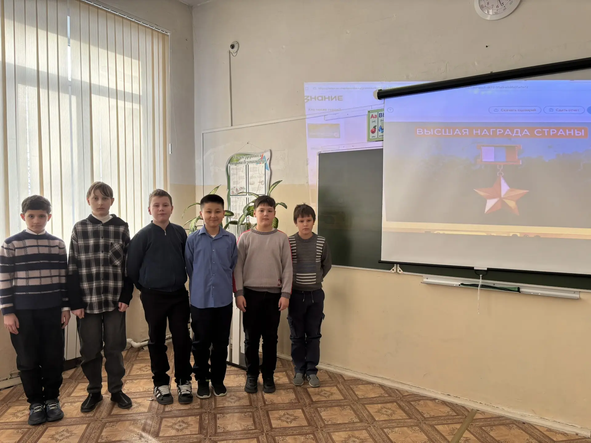 В рамках Дня Защитника Отечества учащиеся 5 В класса МОУ «СОШ «Сфера» г.о. Воскресенск вместе с советником директора по воспитанию приняли участие во Всероссийской акции «Наши защитники Отечества» и изучили тематическую презентацию о Героях России, подготовленную Российским обществом «Знание» и Российским детско-юношеским центром.