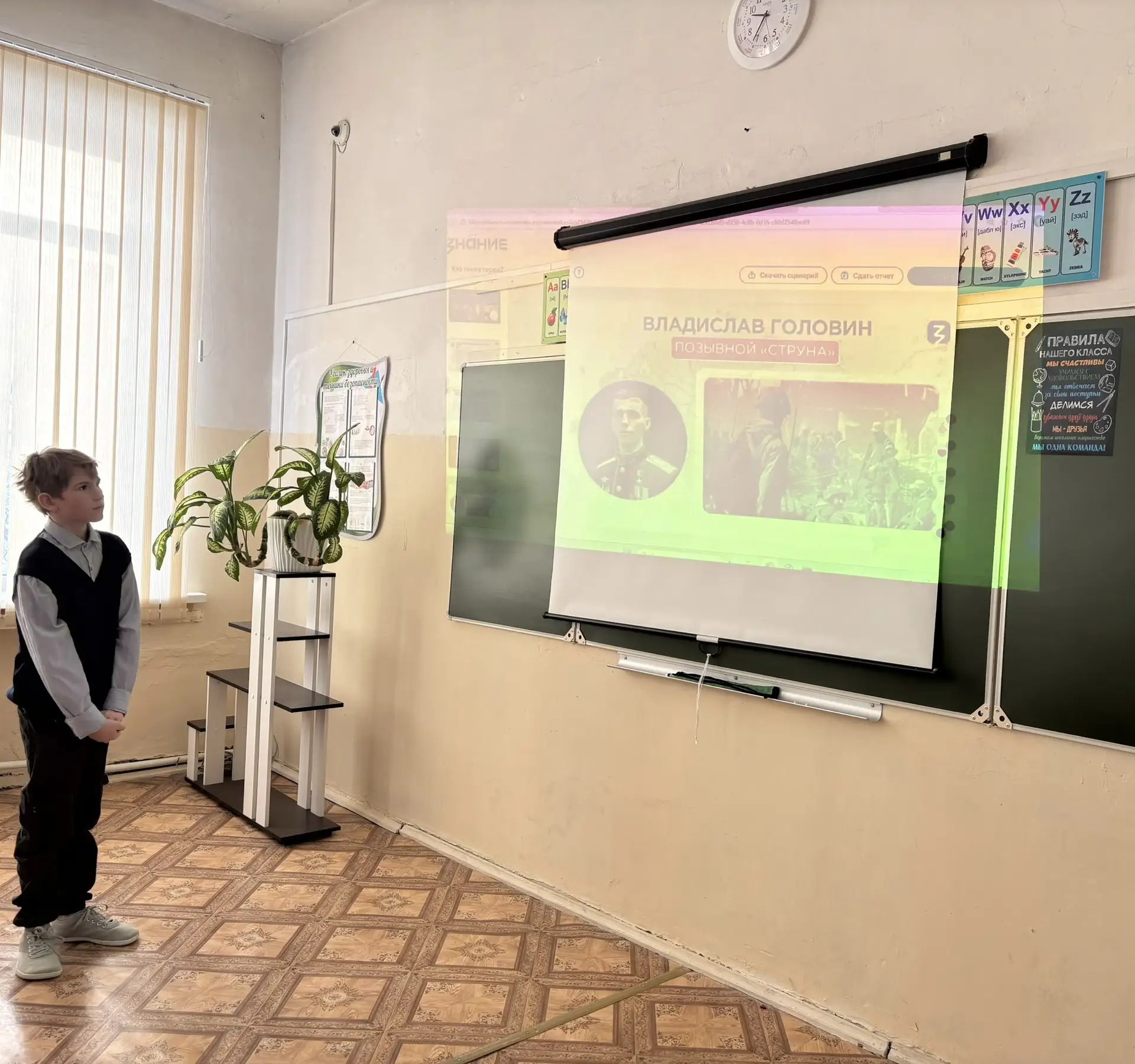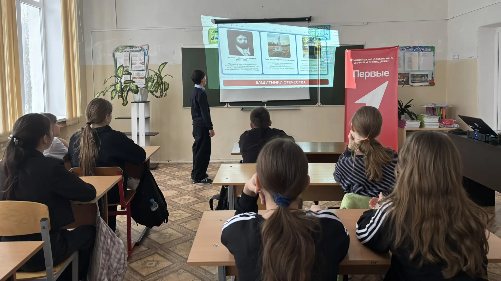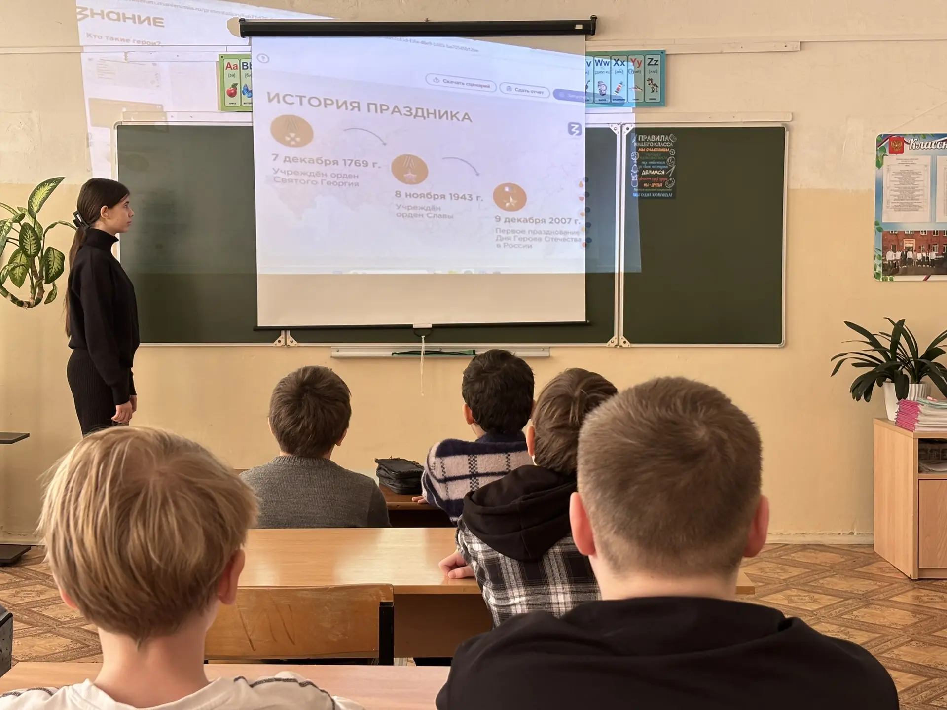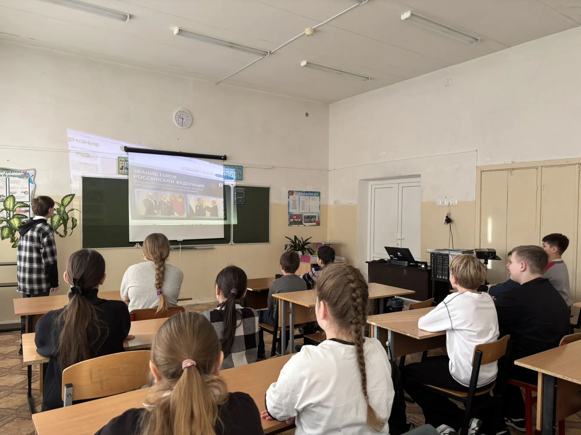 В рамках Дня Защитника Отечества учащиеся 5 В класса МОУ «СОШ «Сфера» г.о. Воскресенск вместе с советником директора по воспитанию приняли участие во Всероссийской акции «Наши защитники Отечества» и изучили тематическую презентацию о Героях России, подготовленную Российским обществом «Знание» и Российским детско-юношеским центром.
