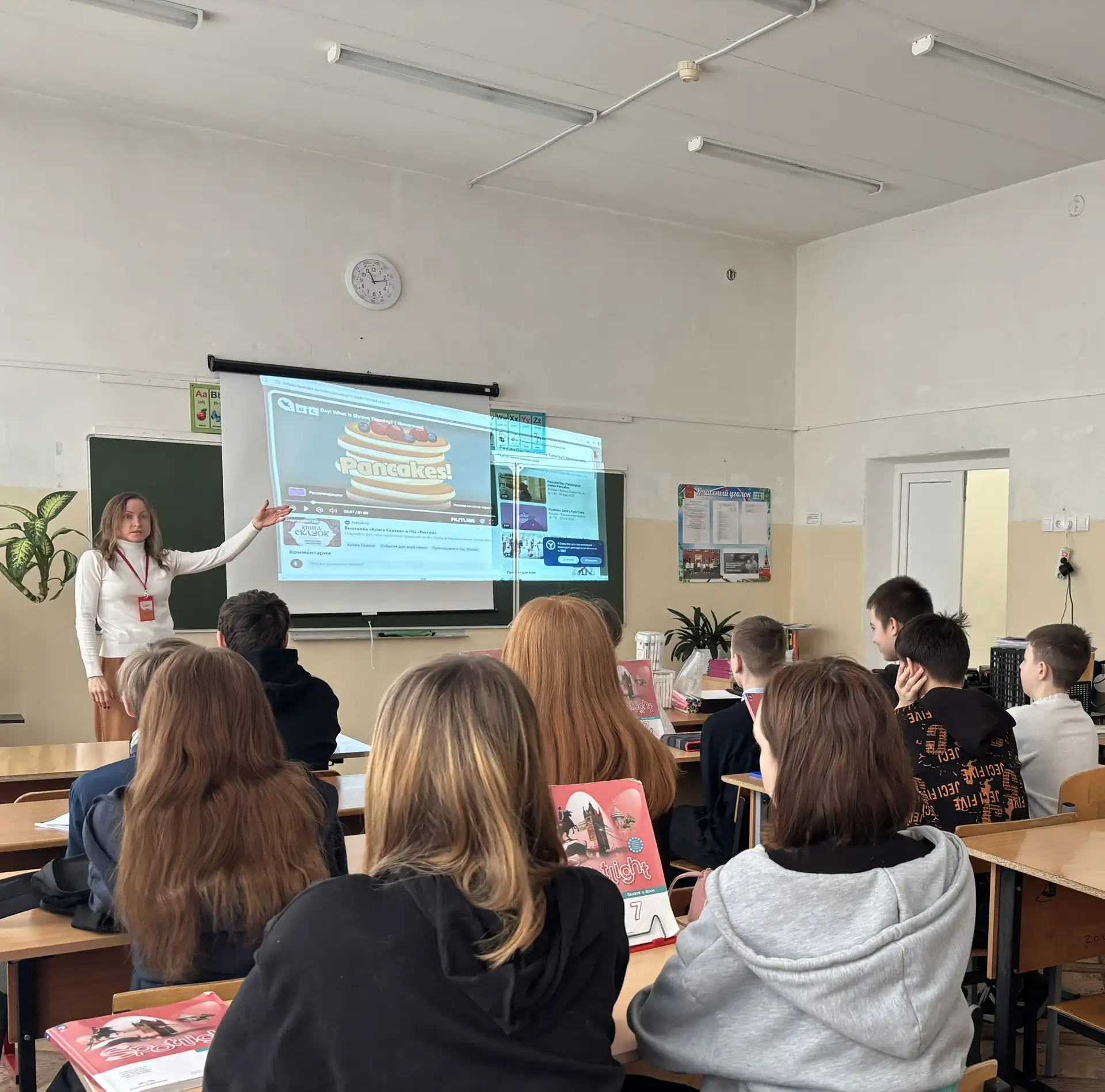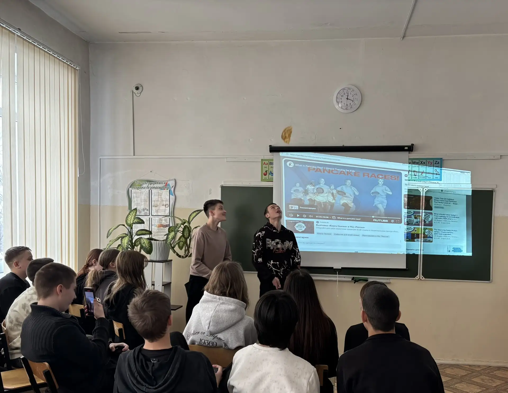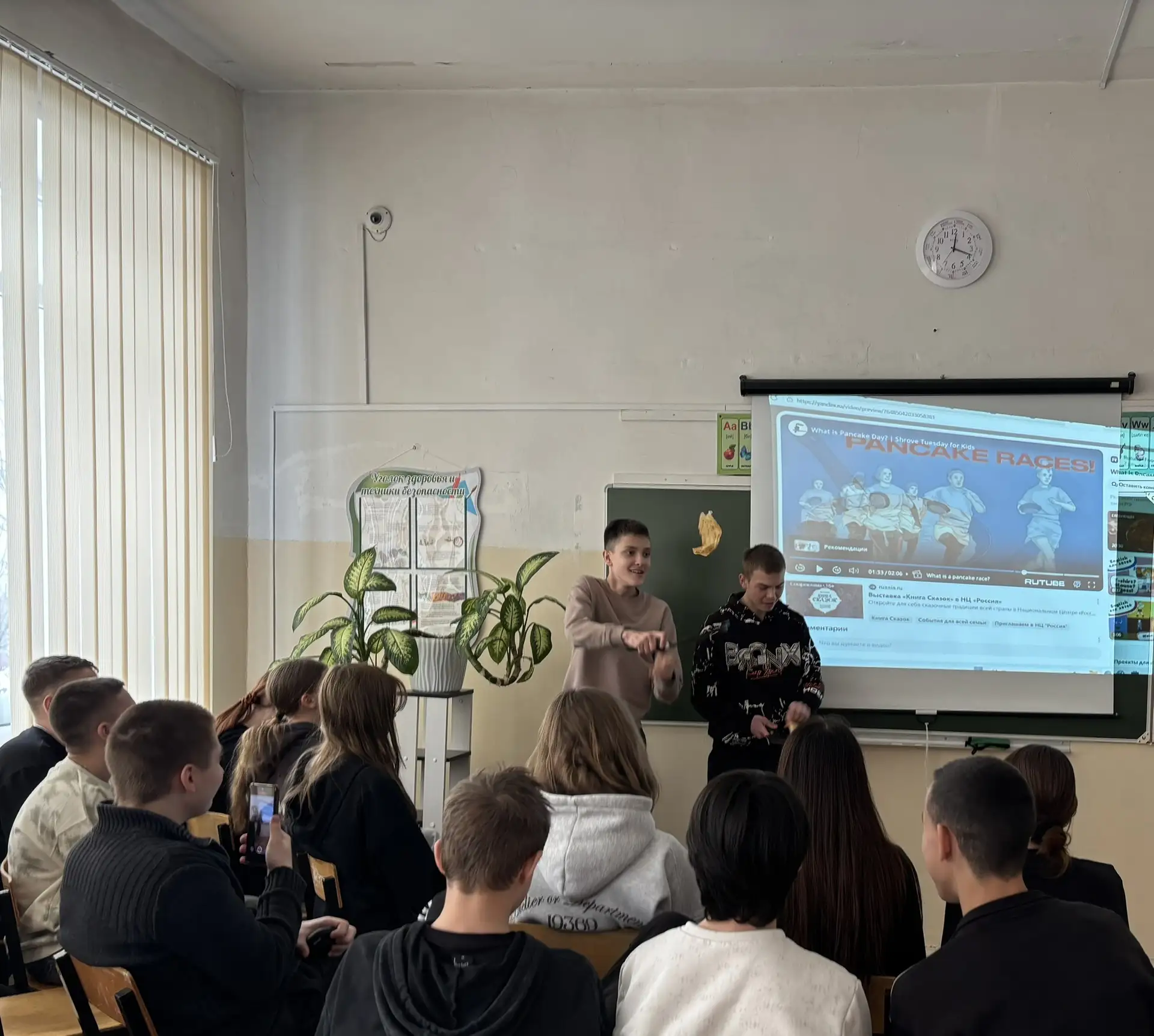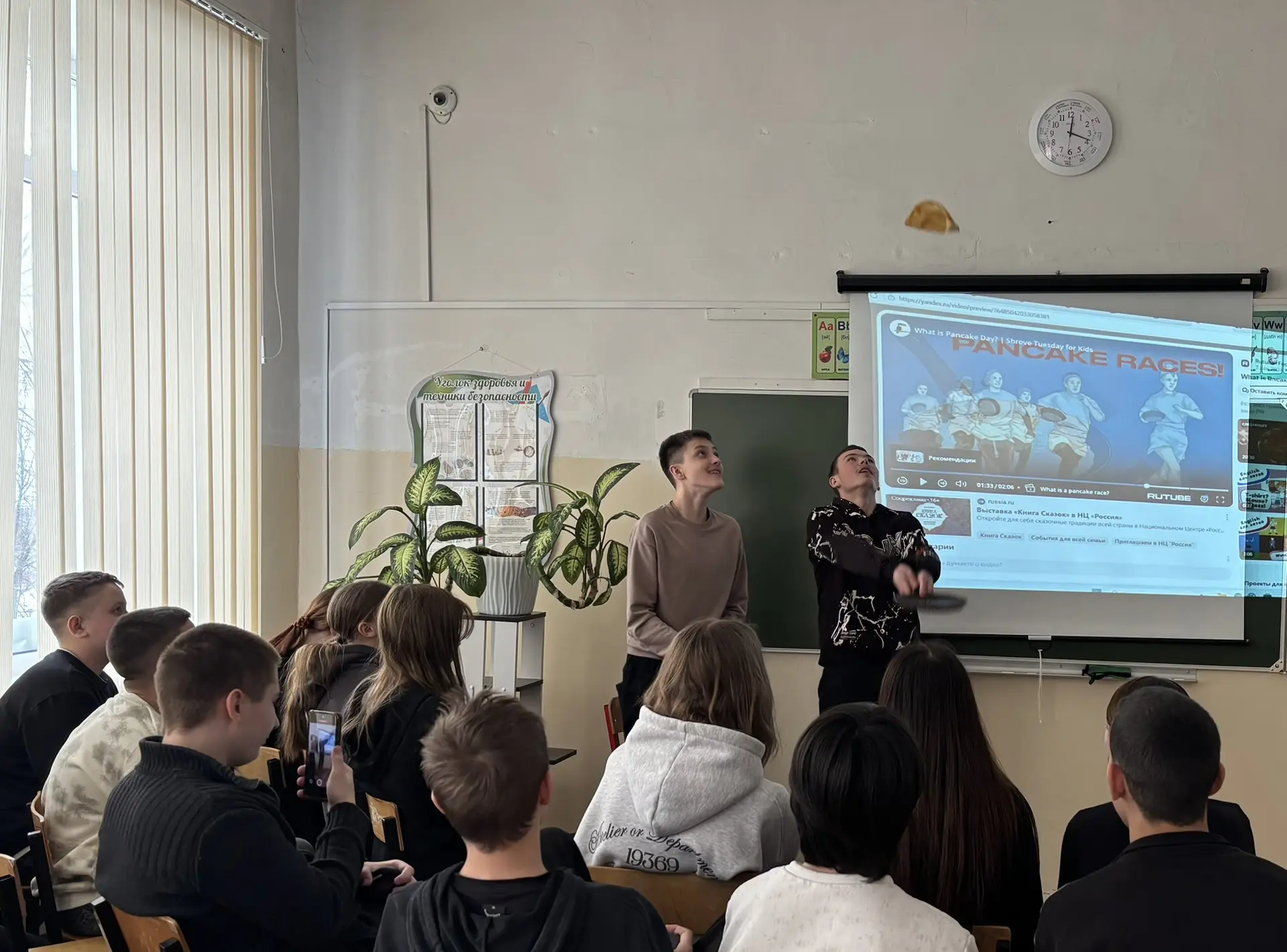 В рамках предметной недели английского языка, посвящённой Масленице, учащиеся 7 В класса МОУ «СОШ «Сфера» г.о. Воскресенск посмотрели на английском языке видеоролик о традициях празднования блинной недели в разных странах и проверили свои знания с помощью познавательного квиза, в то время как учащиеся 8 В класса приняли участие в британском состязании «Блинные бега». Ребята по-очереди подбрасывали блин на сковороде. Победителем стал Роман Романов, который за одну минуту сделал больше 80 бросков:)) Ребята остались очень довольными. Бонусом для учащихся 8 В класса стал просмотр на английском языке видео рецепта блинного рулета. В итоге обучающиеся получили возможность сравнить традиции празднования Масленицы в России и Великобритании, а также поучаствовать в таком необычном и весёлом конкурсе, как «Блинные бега».🤗😋🥞 #школьныеновости