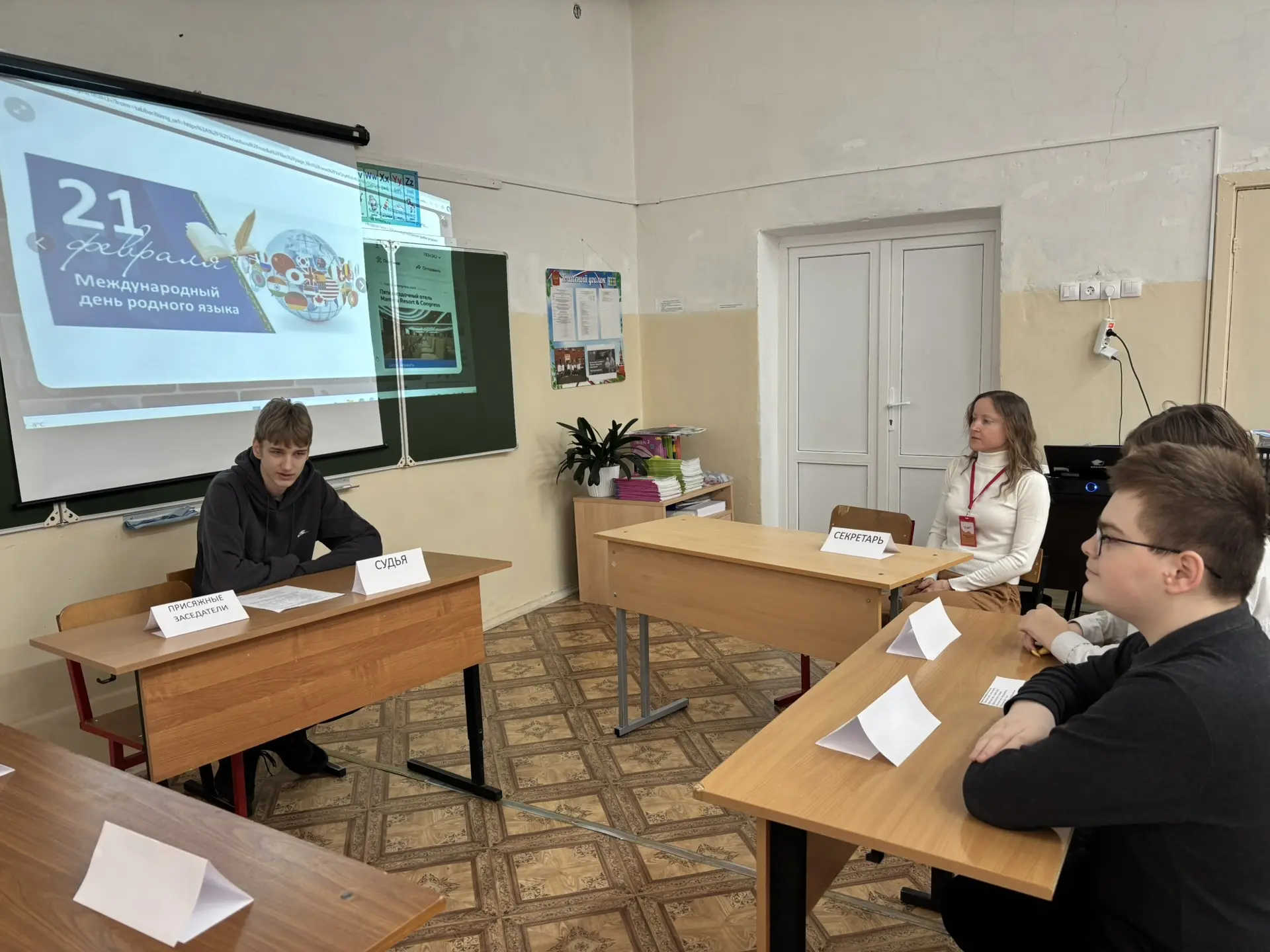 В преддверии Международного дня родного языка (21 февраля) учащиеся 10 В класса МОУ «СОШ «Сфера» г.о. Воскресенск вместе с советником директора по воспитанию сыграли в ролевую игру «Суд над неологизмами».