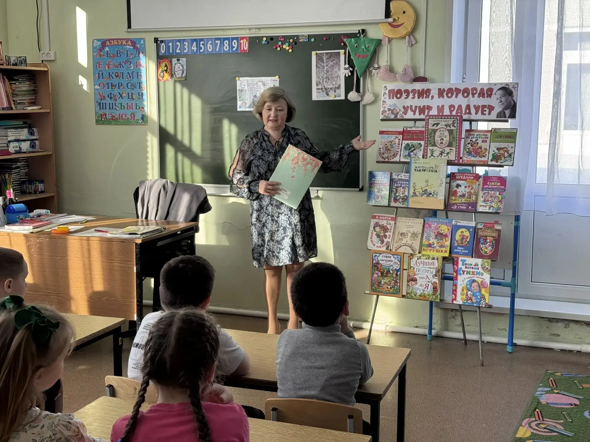 17 февраля мы отмечали знаменательную дату-120 лет со дня рождения Агнии Львовны Барто. В этот день в гостях у ребят МОУ "СОШ" Сфера" СПДГ 'Веснушка" побывала библиотекарь Библиотеки филиал Воскресенск (Красный Холм) Федорова Ирина Александровна. Она рассказала ребятам о этой необыкновенной женщине, вспомнили какие произведения она написала, поиграли в викторину "Угадай-ка".