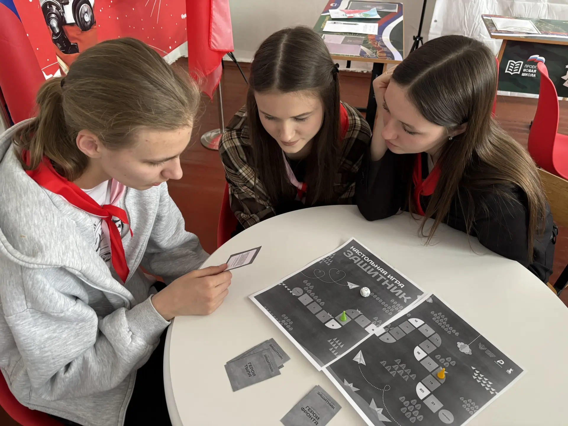 В преддверии Дня Защитника Отечества (23 февраля) учащиеся 11 В класса МОУ «СОШ «Сфера» г.о. Воскресенск вместе с советником директора по воспитанию сыграли в тематическую настольную игру «Защитник» и смогли больше узнать о героях фронта и тыла, о деятелях образования и искусства в годы Великой Отечественной войны.