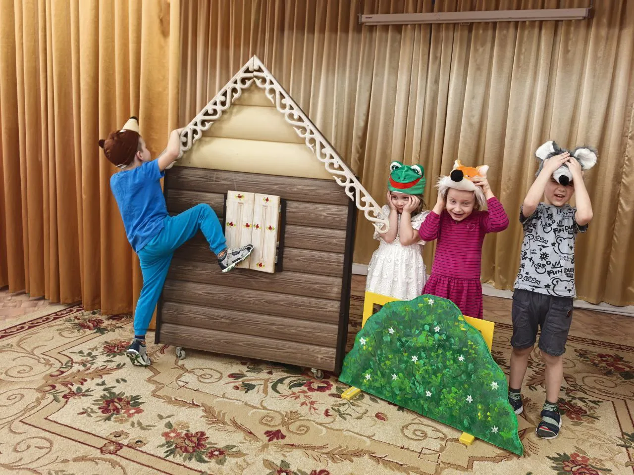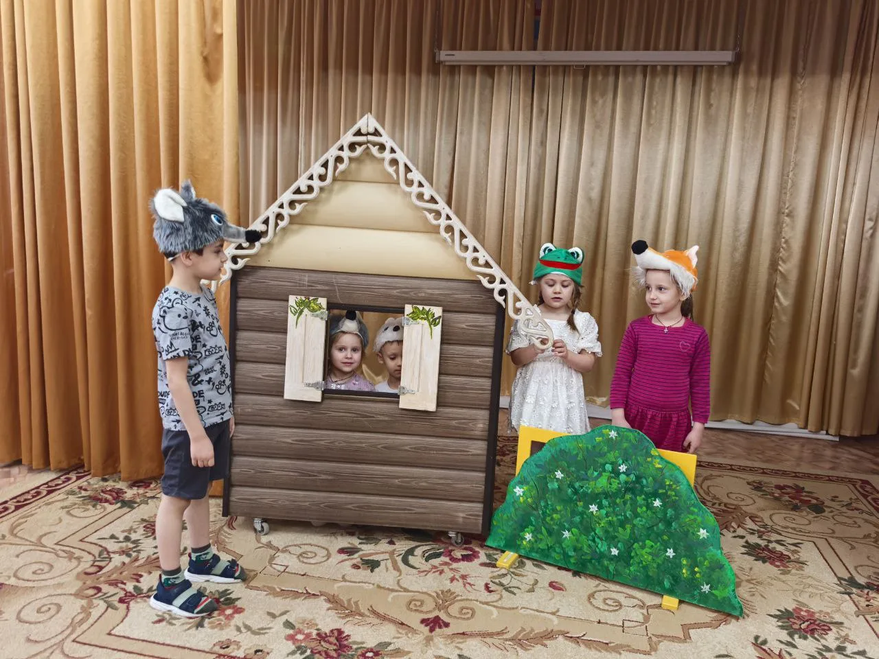 В рамках реализации проекта " Предшкола" : стандарт детского сада" на тематической неделе "Театр детей" г.о.Воскресенск МОУ "Сфера" СОШ" СПДГ «Веснушка» в старшей группе прошла инсценировка сказки "Теремок ".