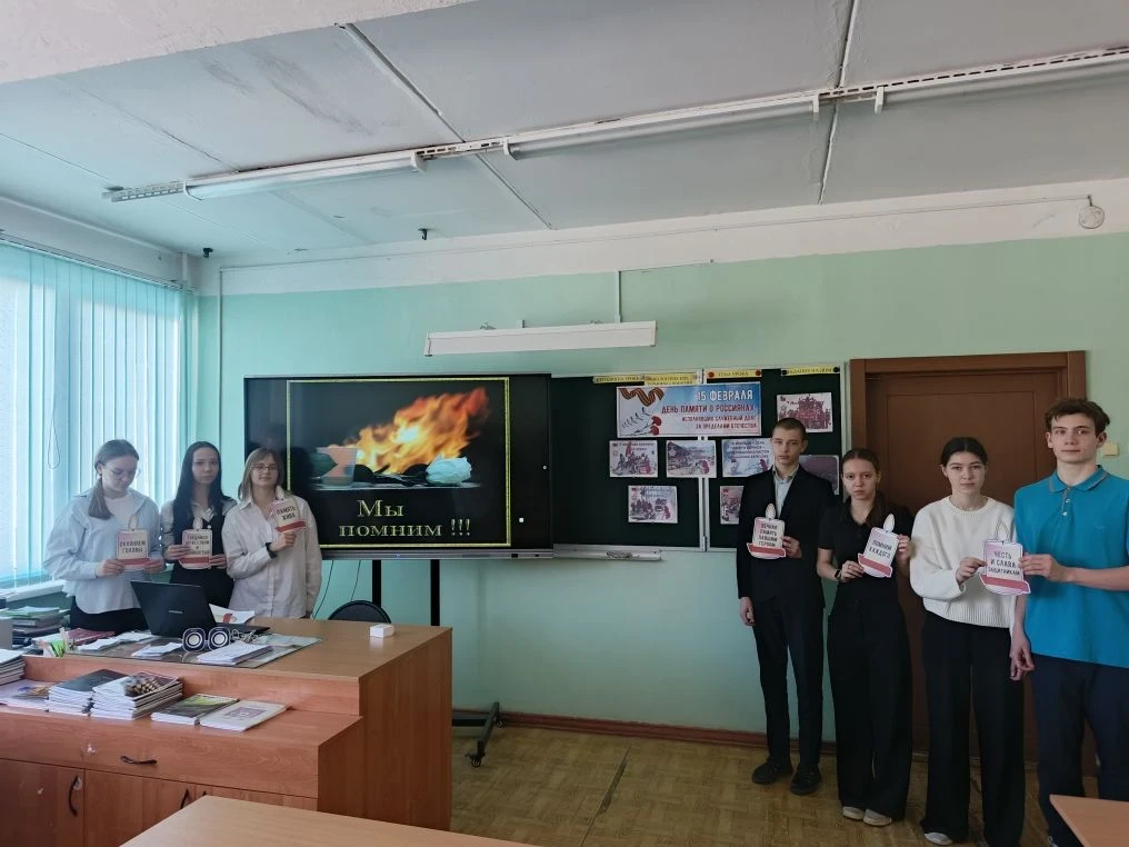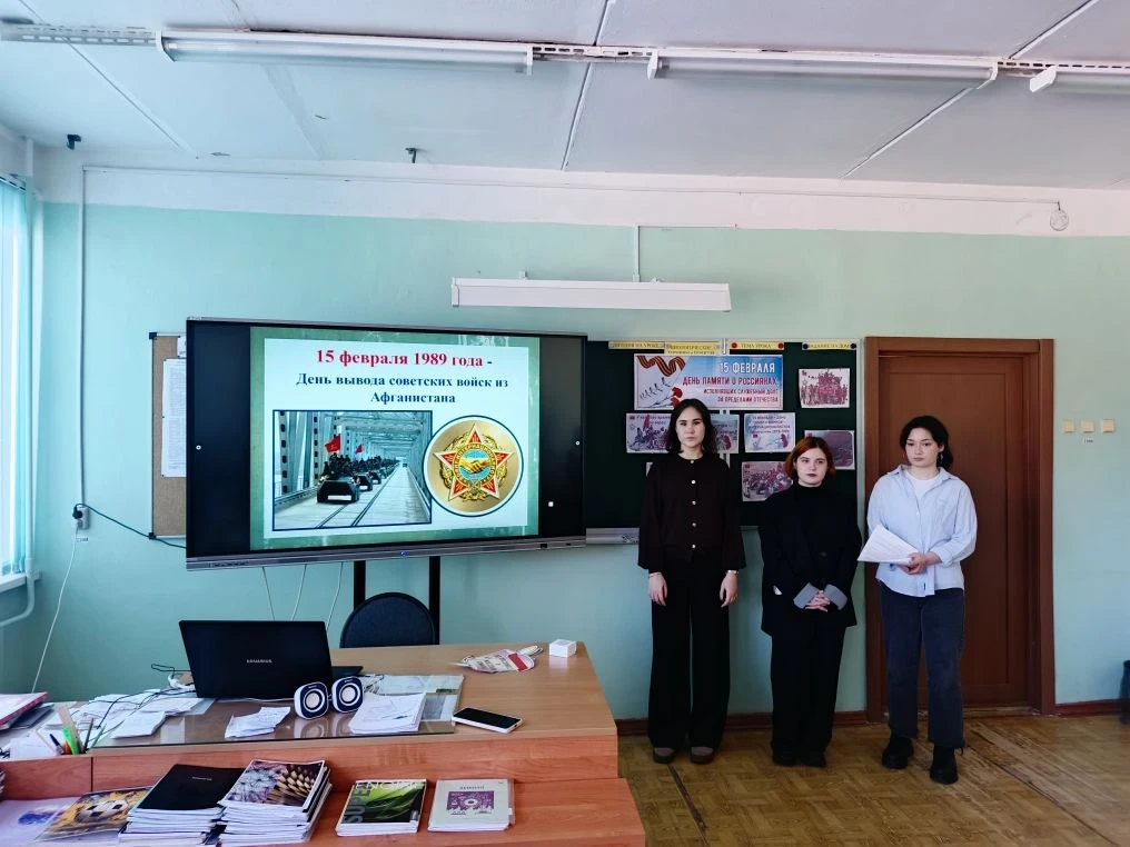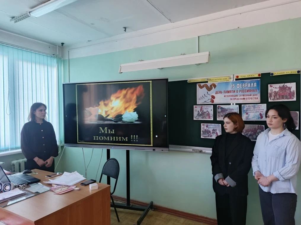 15 февраля отмечается «День вывода советских войск из Афганистана». Классные руководители Жогина И.Е. и Жильцов А.В. провели «Урок мужества» для учащихся 8-х классов. Ребятам рассказали о событиях Афганской войны, познакомив их с историческими фактами и воспоминаниями ветеранов боевых действий. Особое внимание уделено судьбе выпускника школы Юрия Шумилина, погибшего в Афганистане. Был организован просмотр документальных фильмов и фотографий, рассказывающих о мужестве наших солдат и офицеров. В завершении урока участники почтили память погибших воинов минутой молчания. Этот трогательный ритуал стал символом благодарности и глубокого уважения к героизму тех, кто отдал свою жизнь за мир и свободу нашего Отечества.
