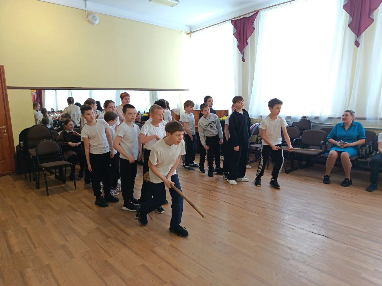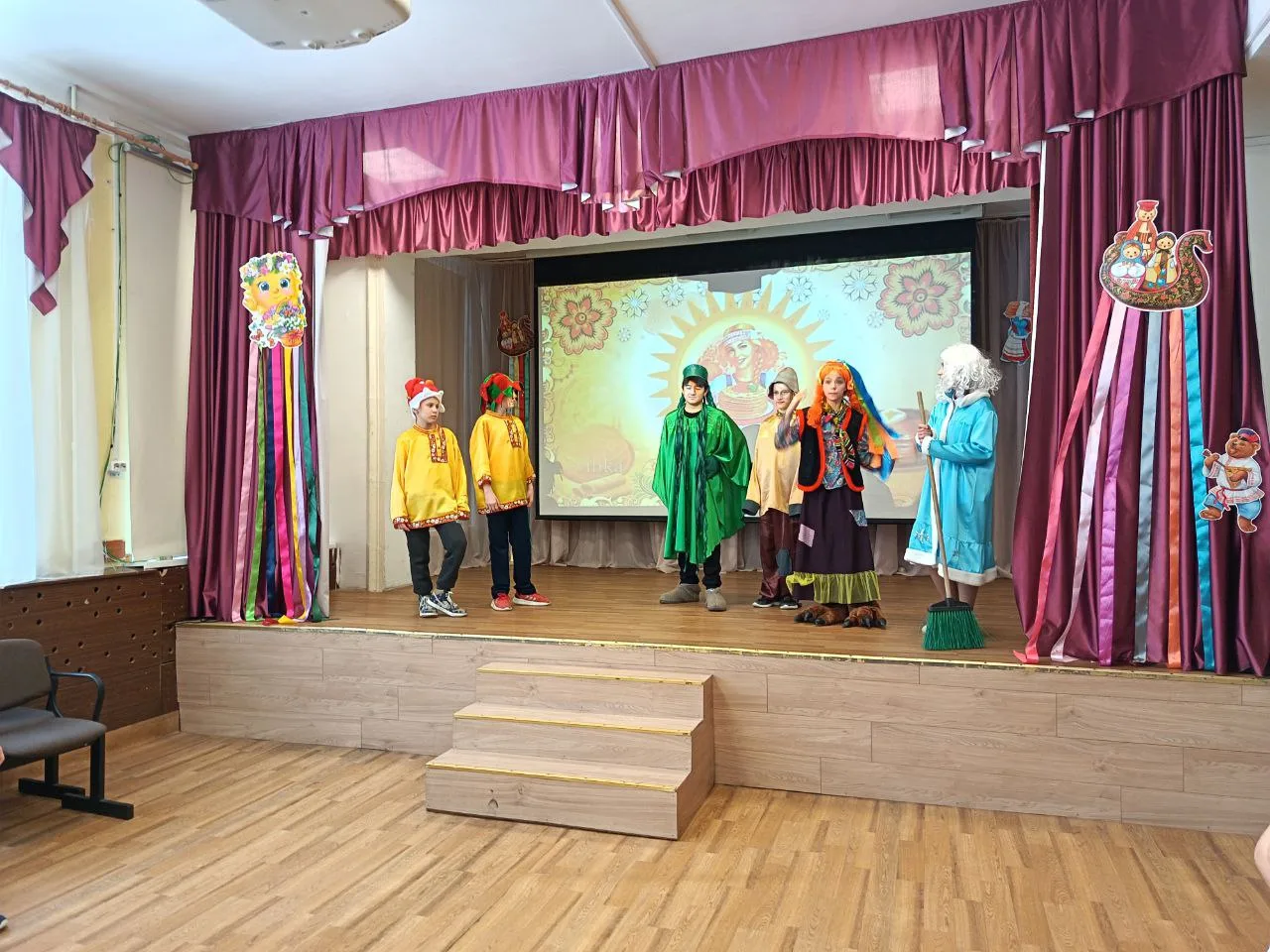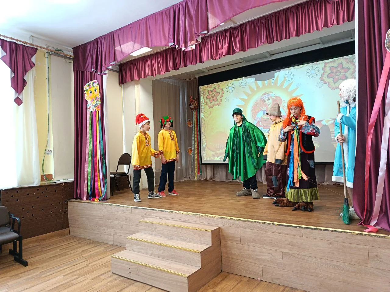 🎭 Для учеников начальных классов участники театральной группы «Артист» устроили театрализованное представление. Ученики начальных классов стали еще и участниками народных забав. Летали на скоростных «метлолетах», ловко преодолевали «болотные кочки», мерялись силушкой и устроили жаркую (но очень веселую!) снежную битву.