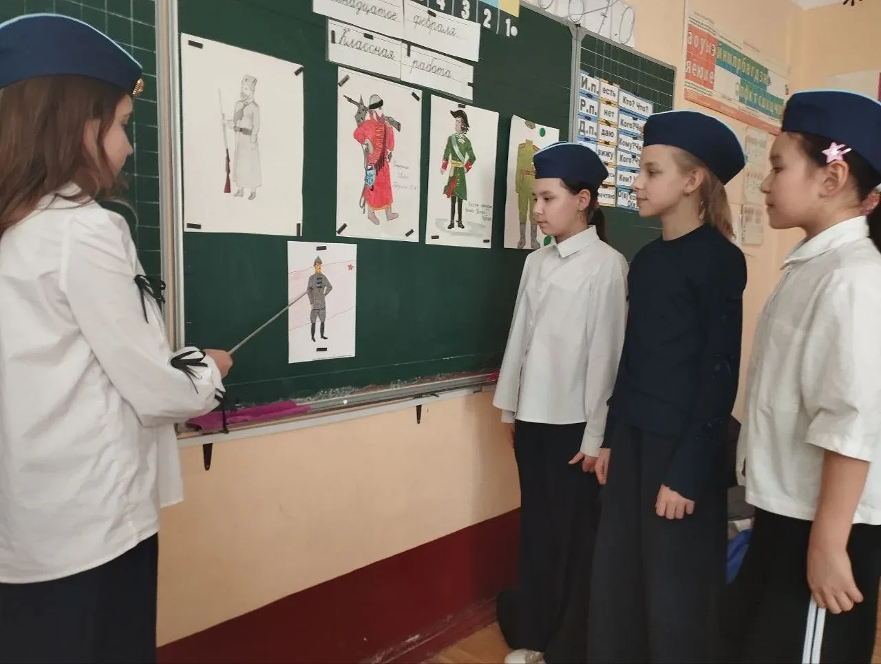 17 февраля в рамках внеурочной деятельности «Наша Родина от края и до края» в 4 «Б» классе (классный руководитель Гуляева Т.А.), состоялась увлекательная игра «От кольчуги до мундира. История военного костюма». Это мероприятие проходило в рамках большого проекта по гражданско-патриотическому воспитанию школьников. Накануне Дня защитника Отечества ребята погрузились в историю русского военного мундира. Они поняли, что эта тема гораздо шире, чем просто изучение элементов формы — шапок, воротников и пуговиц. Ведь речь шла обо всей истории нашей Родины, великих полководцах, героизме русских солдат и офицеров, славных победах и легендарных походах. Во время мероприятия участники обсудили исторические особенности таких знаков военных форм, как кольчуга и шинель. Узнали, почему именно гусаров прозвали «летучими». А также успешно справились с вопросами специальной викторины, посвящённой истории русской военной формы.